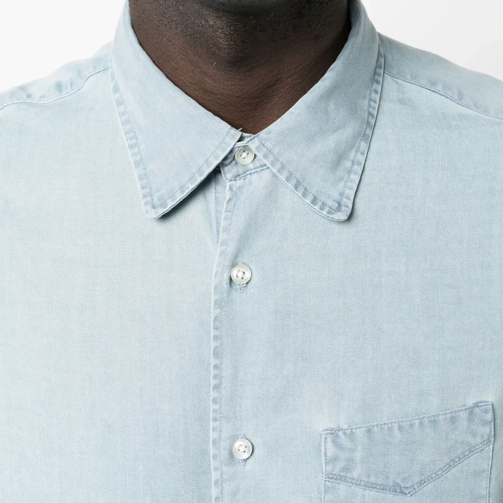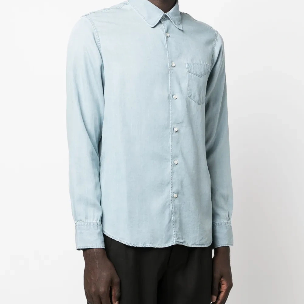 Голубой, лиоцелл, плоский заостренный воротник, застежка на пуговицах спереди, нагрудный накладной карман, длинные рукава, манжеты на пуговицах и прямой подол. Этот товар как минимум на 50% состоит из материалов, которые признаны более безопасными для окружающей среды, и/или произведены с использованием методов, которые помогают сократить потребление воды и химических веществ. Узнать больше о том, какие товары получают отметку «Ответственный выбор», можно из материала «Как мы оцениваем экологичность и этичность».