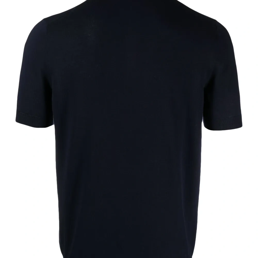 Темно-синий, хлопок, ткань пике, воротник поло, короткая застежка на пуговицах спереди, короткие рукава и прямой подол.