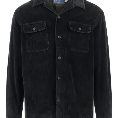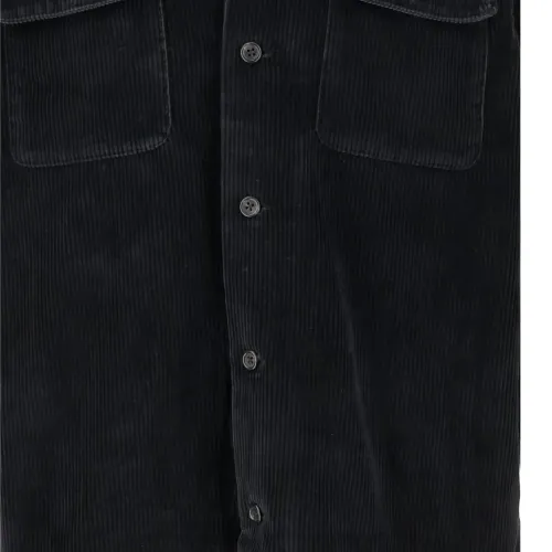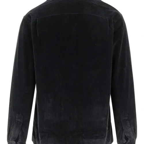 чёрная вельветовая фактура, застёжка на пуговицы, два нагрудных кармана, длинные рукава, отложной воротник