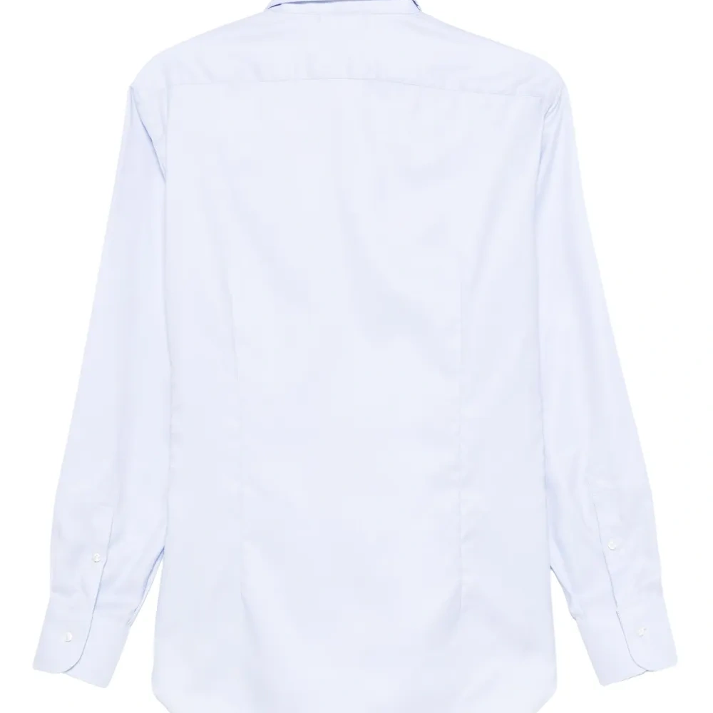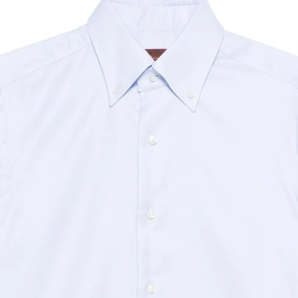 светло-голубой хлопок длинный рукав застежка на пуговицы воротник с острыми концами манжеты на пуговицах