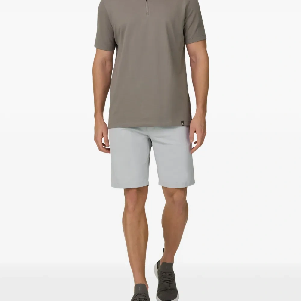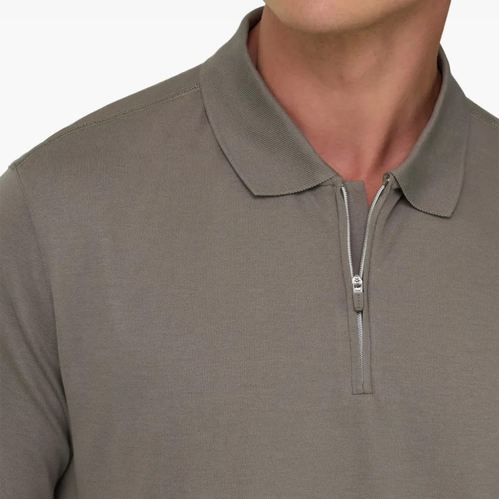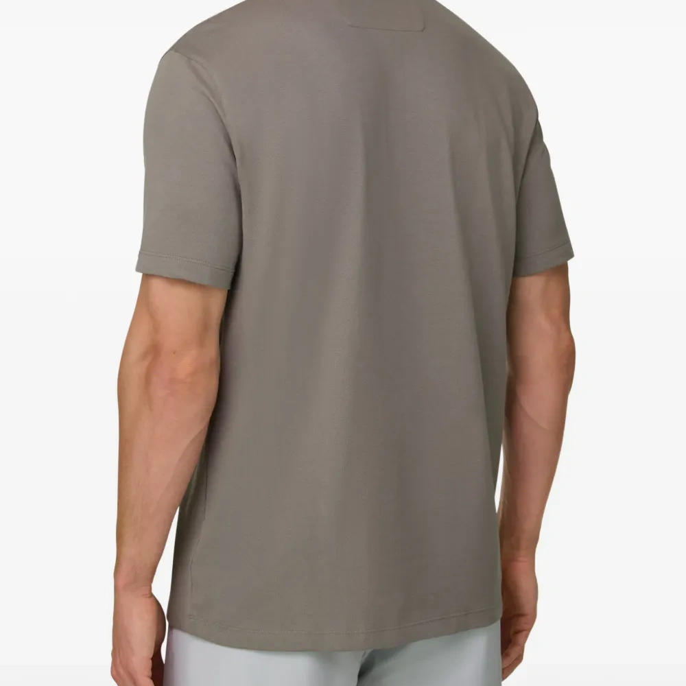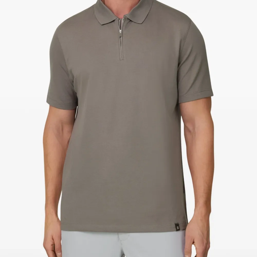 текстура пике цвета глины, открытый воротник, контрастная отделка, нашивка