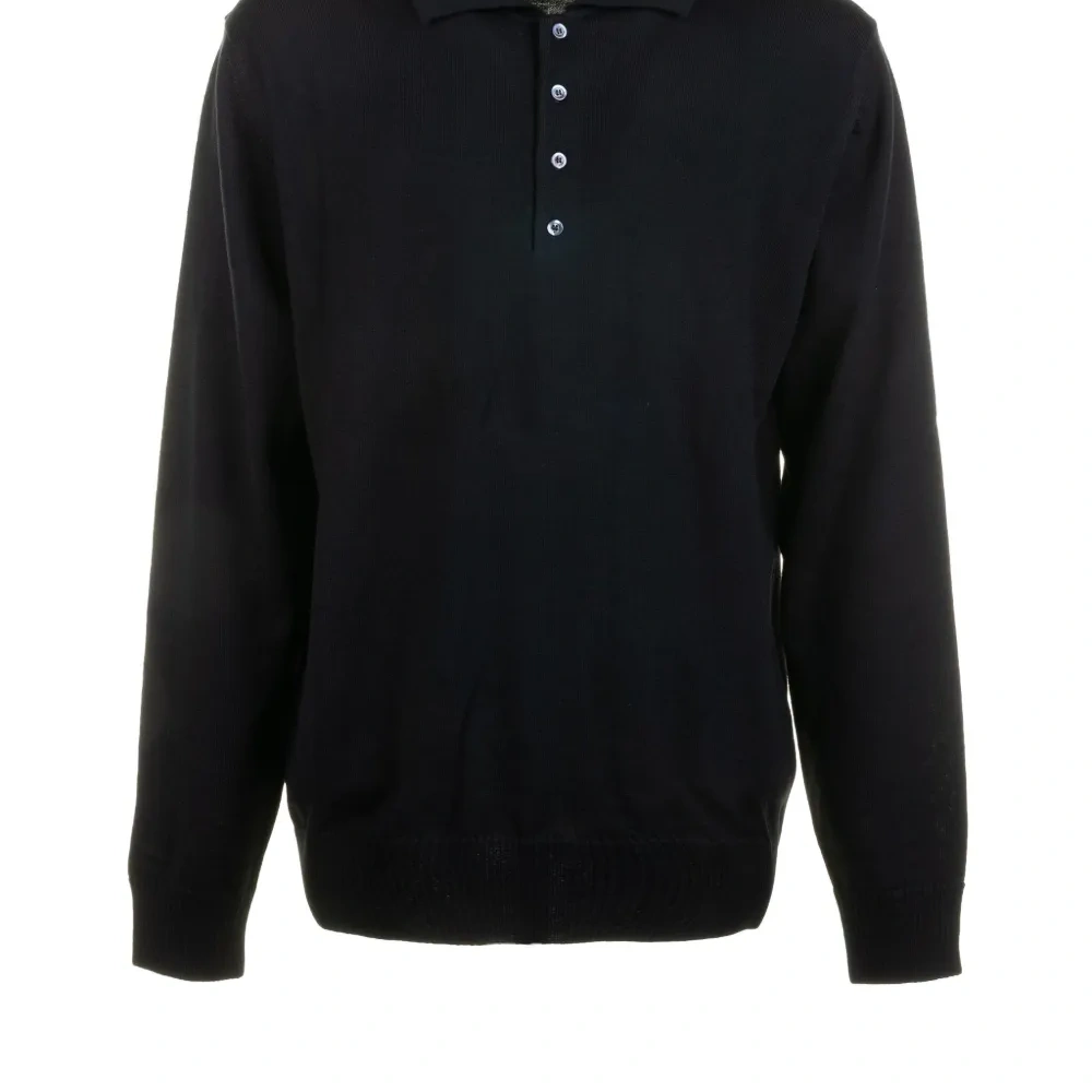 черный шерсть мериноса длинный рукав воротник поло планка на пуговицах рубчатые манжеты и низ