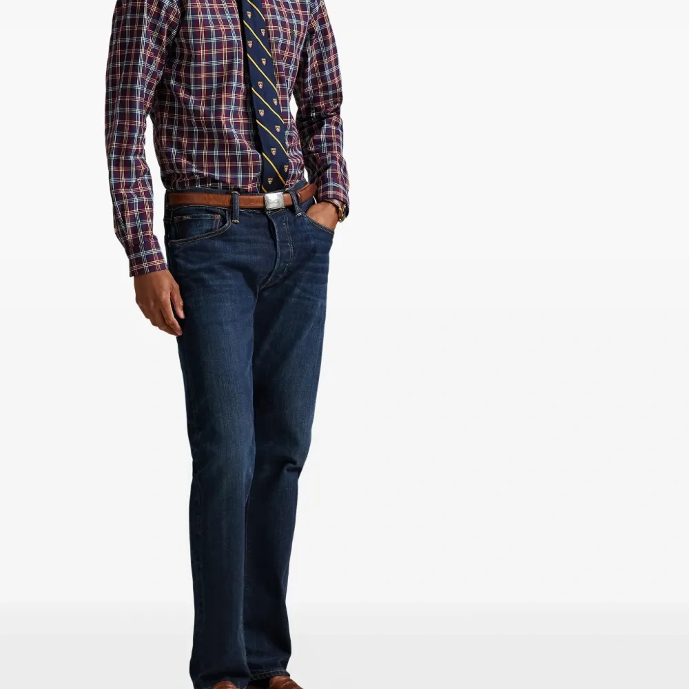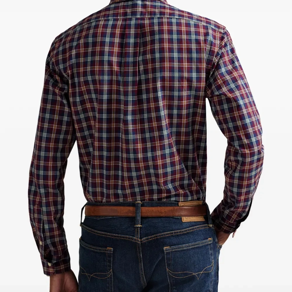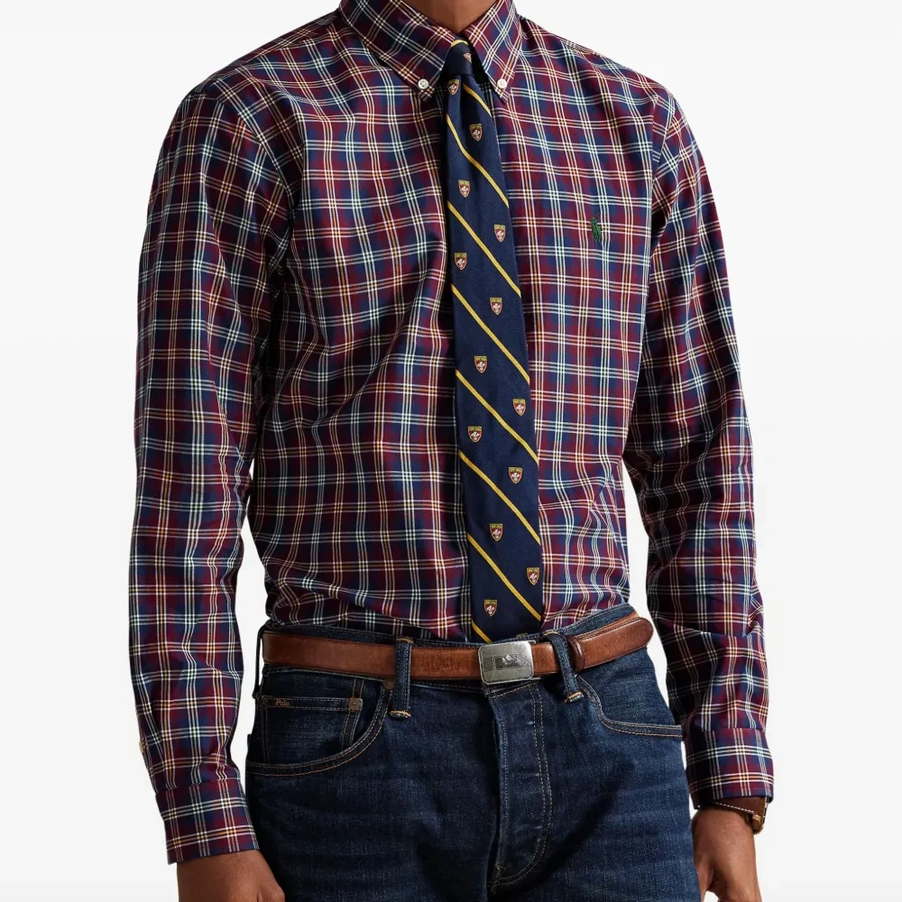 винная рубашка в клетку с длинными рукавами, застёжкой на пуговицы, воротником на пуговицах и вышитым логотипом