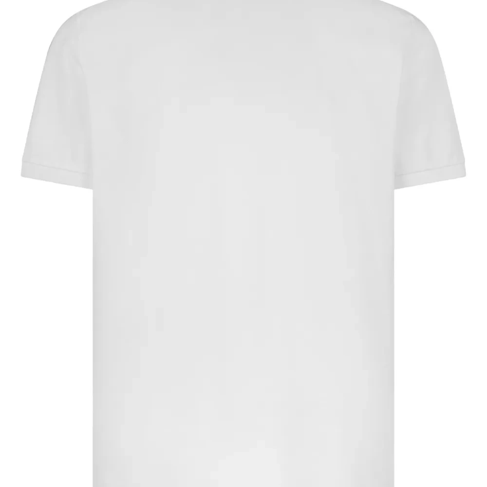 Белый, хлопок, вышитый логотип на груди, воротник поло, планка на пуговицах спереди, короткие рукава и прямой подол.