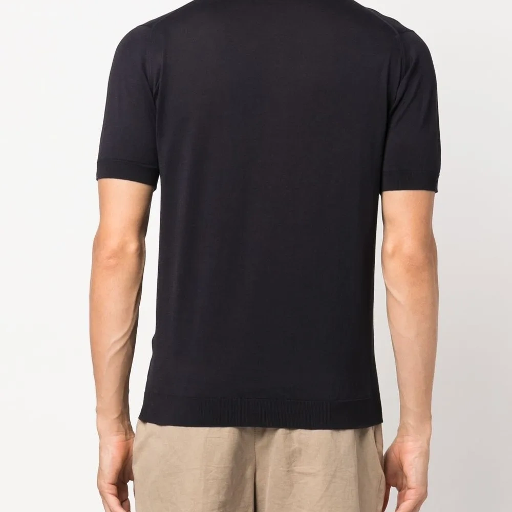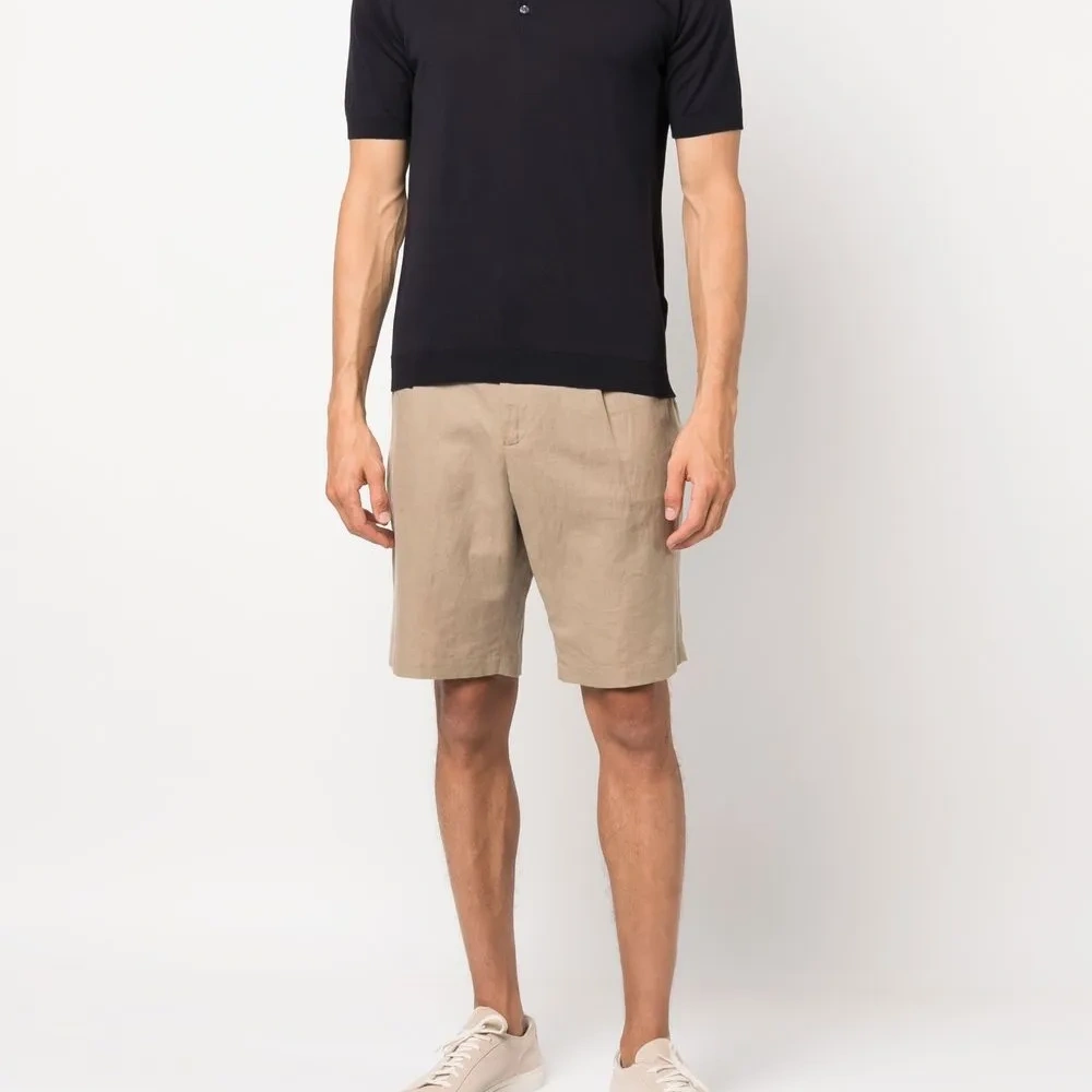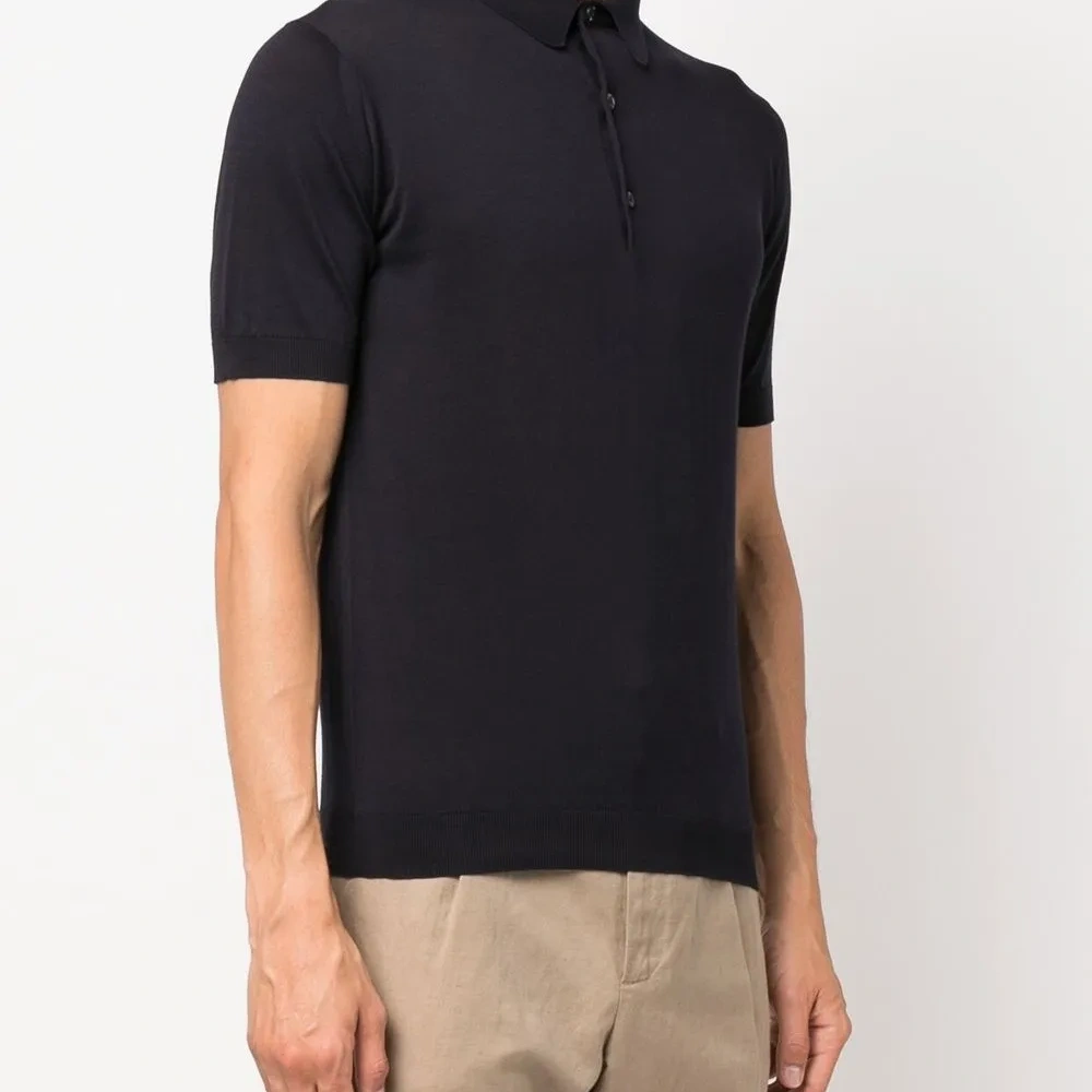 Планка на пуговицах спереди, короткие рукава и прямой подол.
