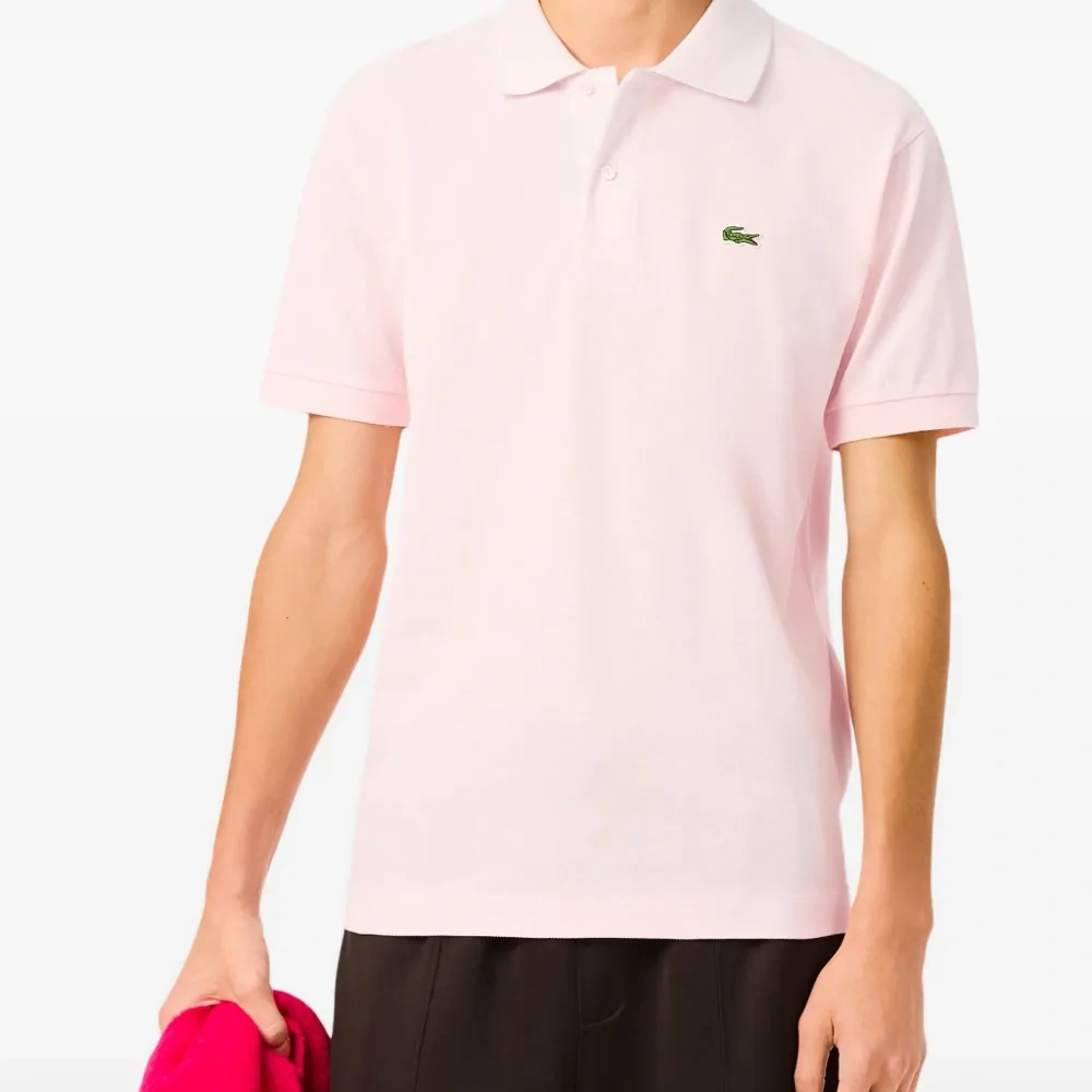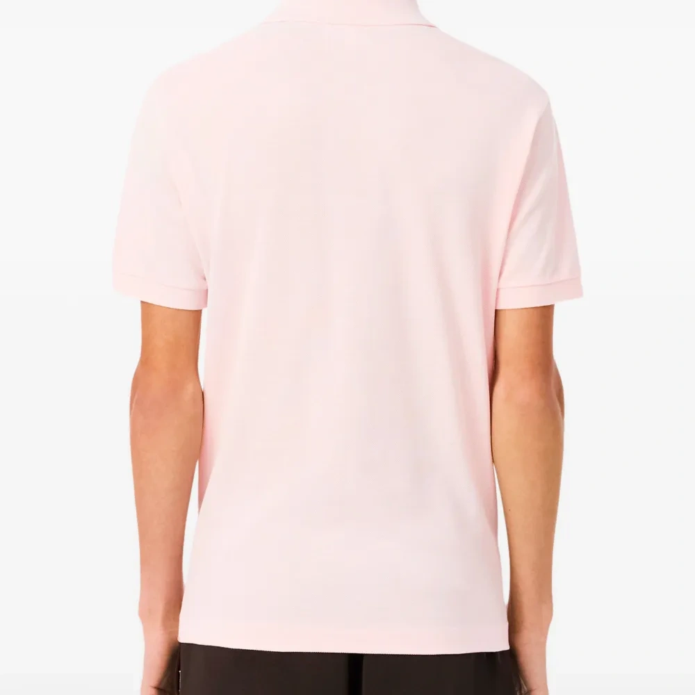 розовая футболка-поло с короткими рукавами, логотипом-аппликацией, воротником-поло и планкой на пуговицах
