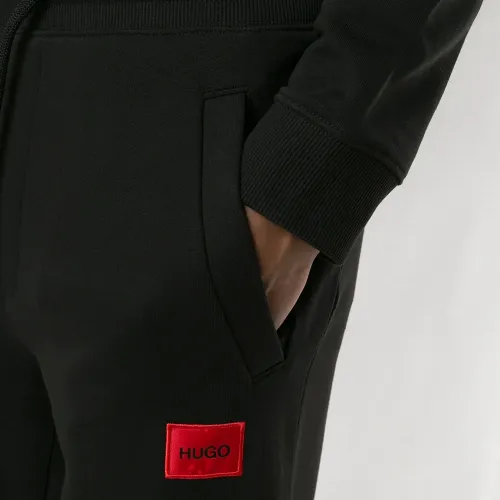 Нашивка с логотипом спереди, завышенная талия, эластичный пояс на шнурке, два вшитых кармана по бокам, задние карманы с листочкой, узкий крой и эластичные манжеты.