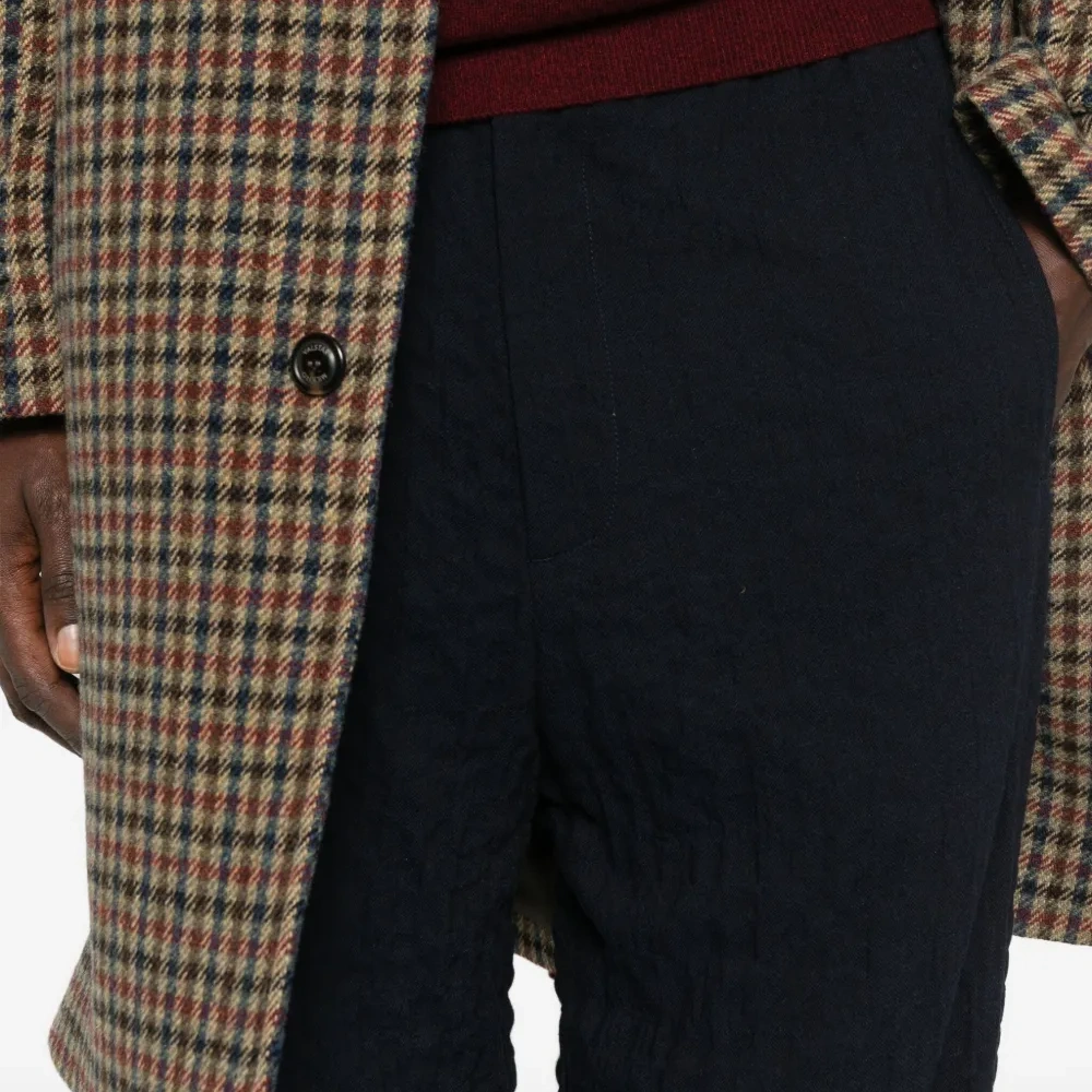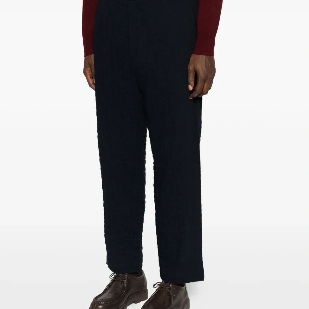 темно-синий застежка на пуговицы и молнию спереди боковые прорезные карманы задние карманы с листочкой прямой крой брючин