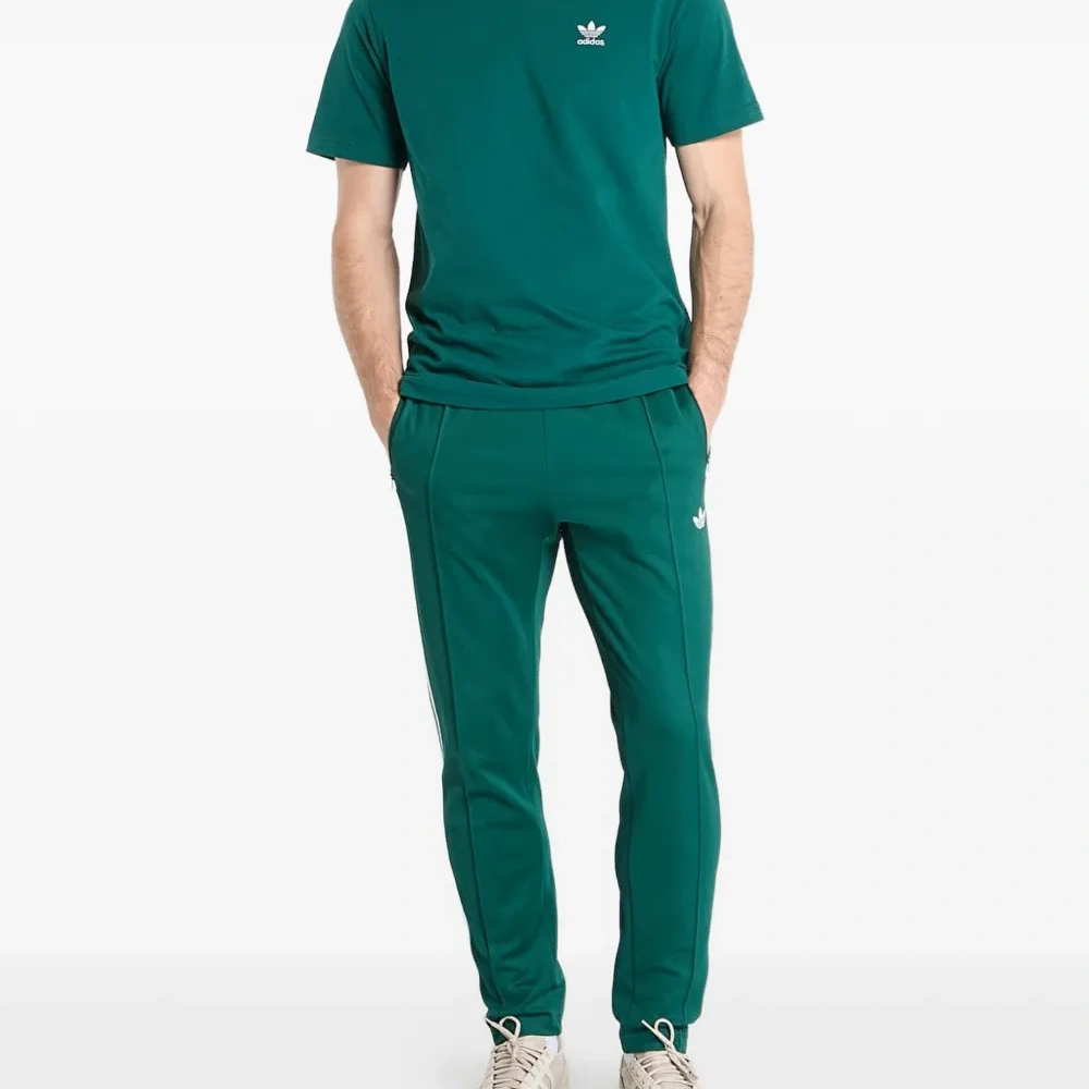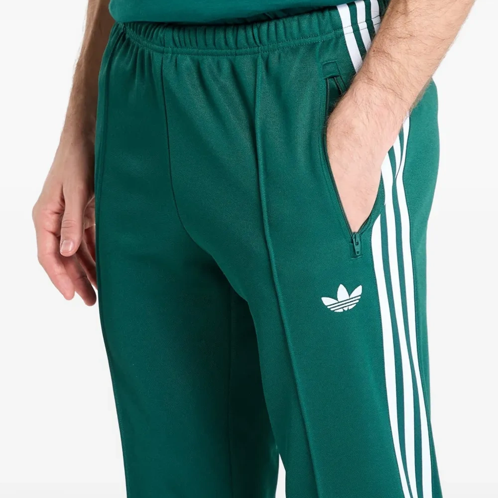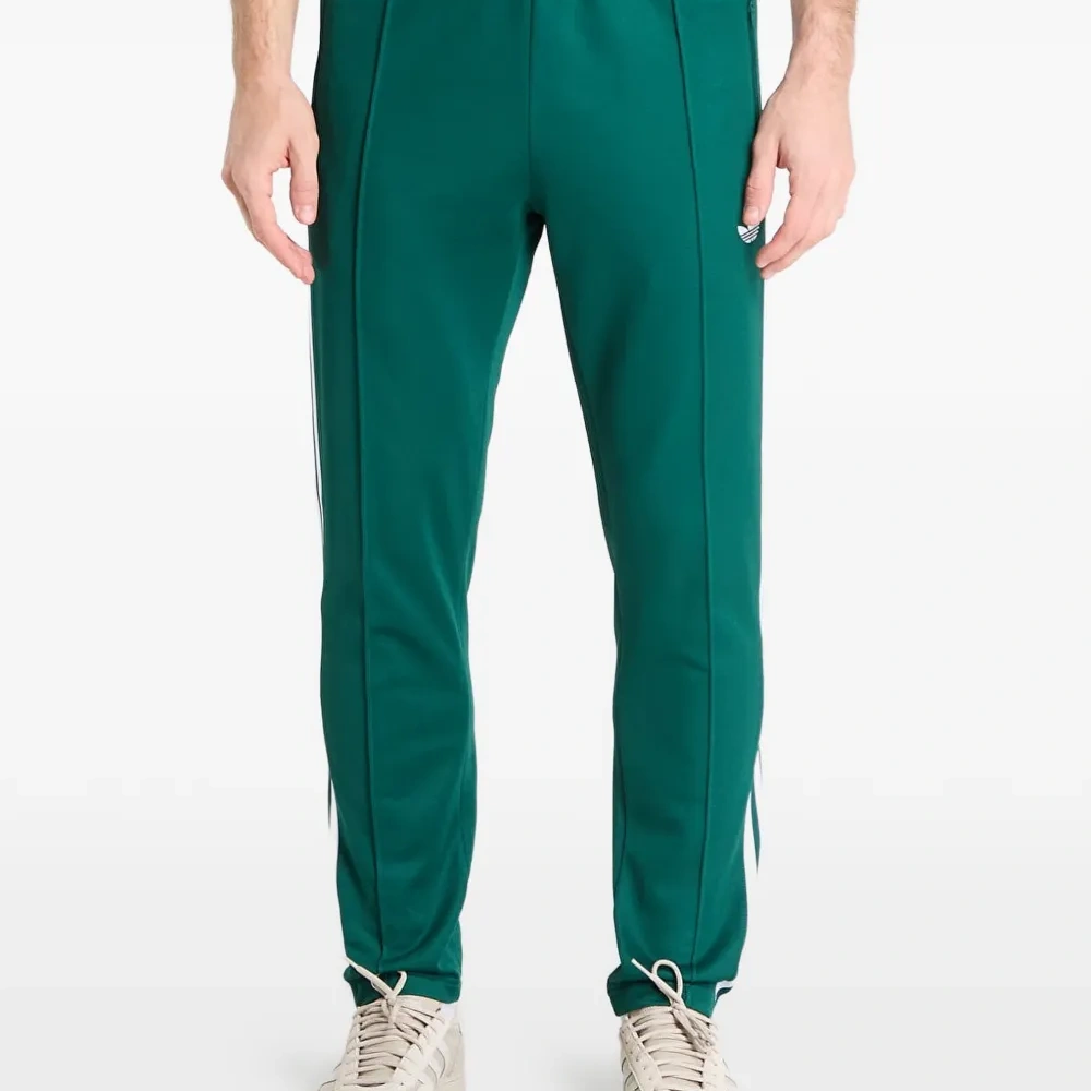 зеленый цвет, полосатая отделка, боковой карман на молнии, элемент с логотипом, эластичный пояс, зауженный крой