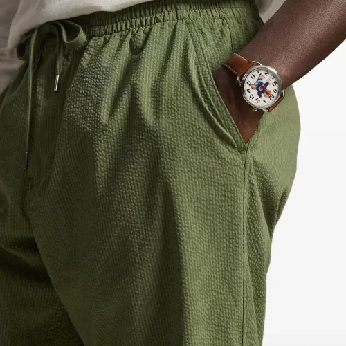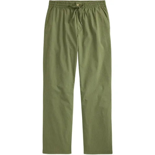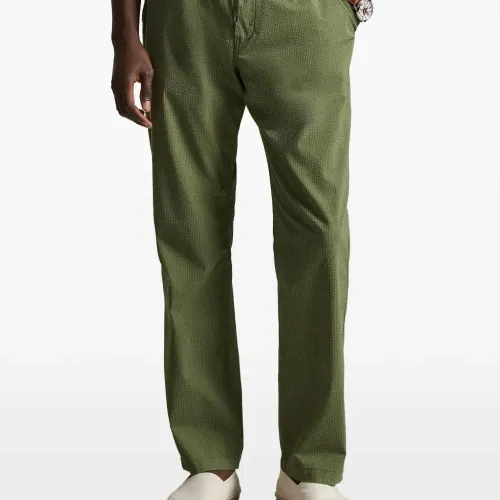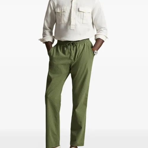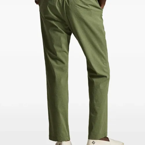 зелёные текстурированные брюки с эластичным поясом на кулиске и прорезными карманами