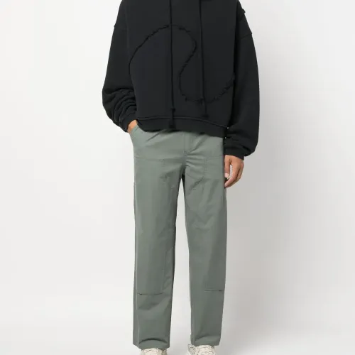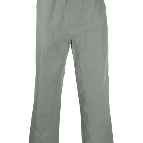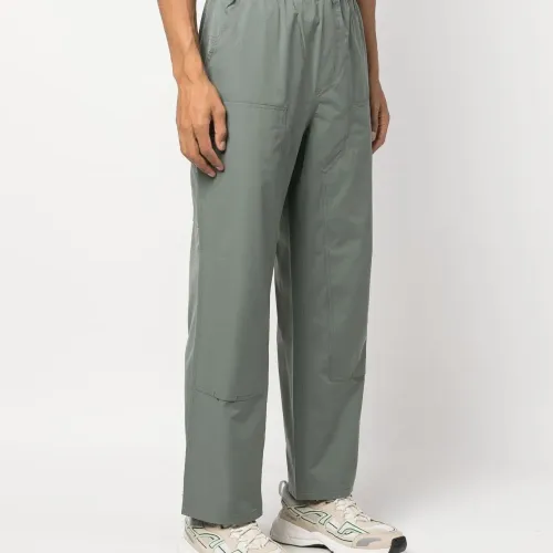 Серо-зеленый, хлопок, полоска сбоку, нашивка с логотипом сзади, эластичный пояс, прямой крой, два вшитых кармана по бокам и два накладных кармана сзади.