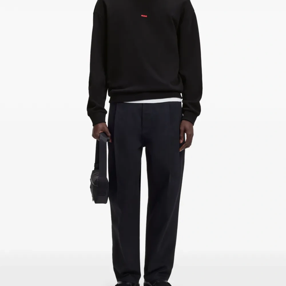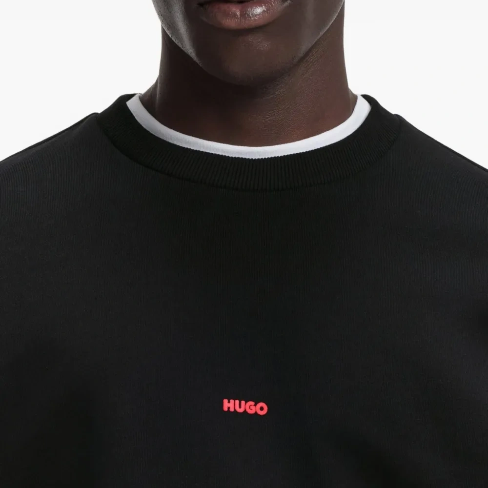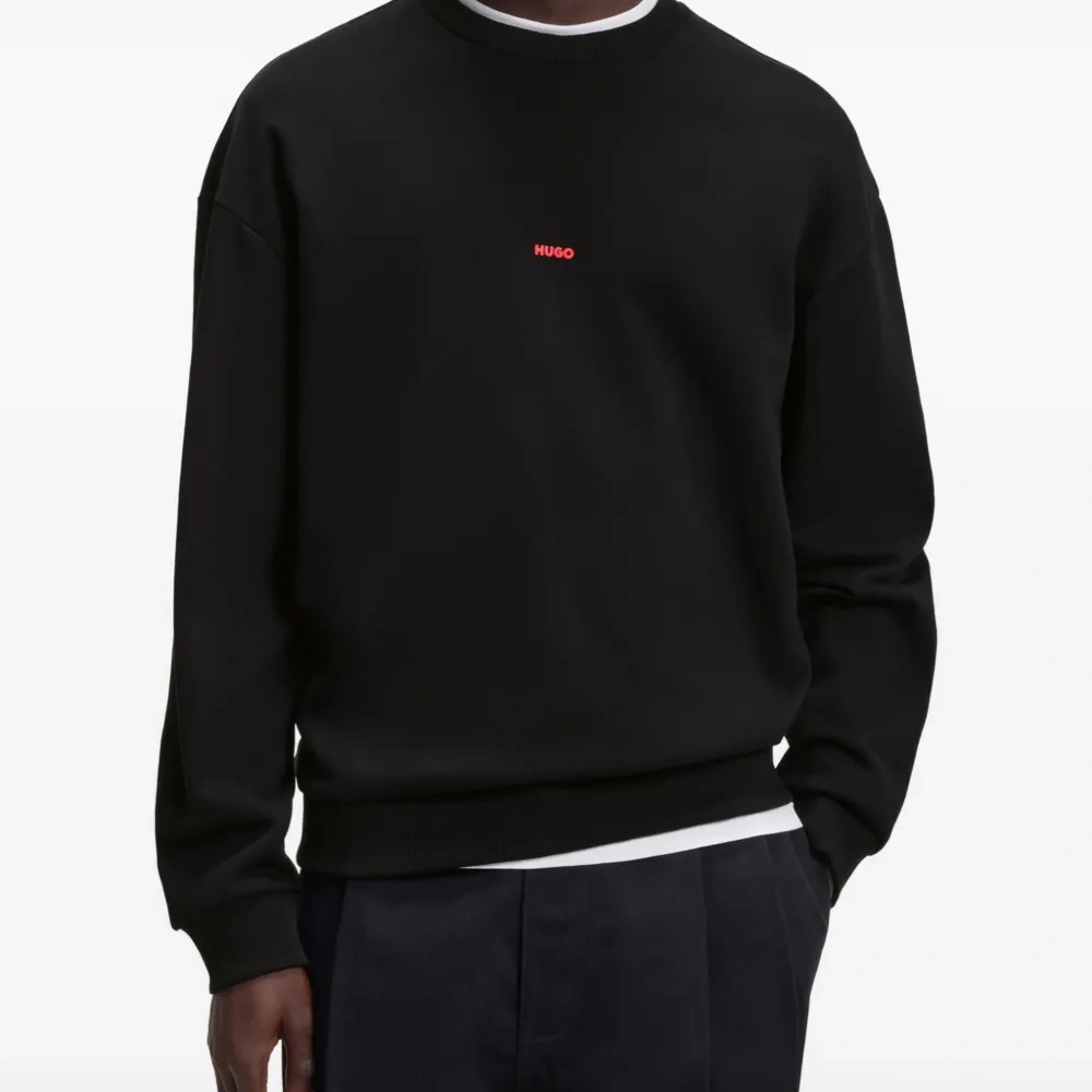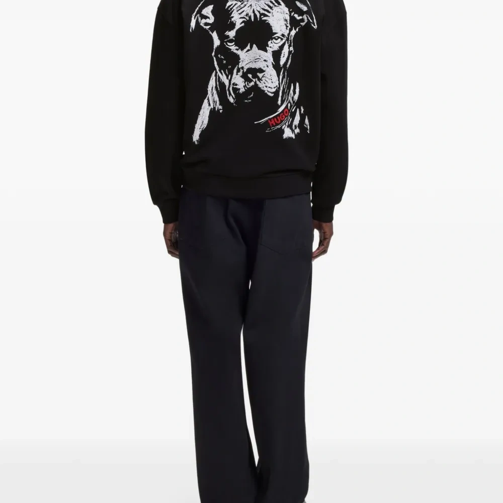 черный свитшот с круглым вырезом и изображением собаки на спине