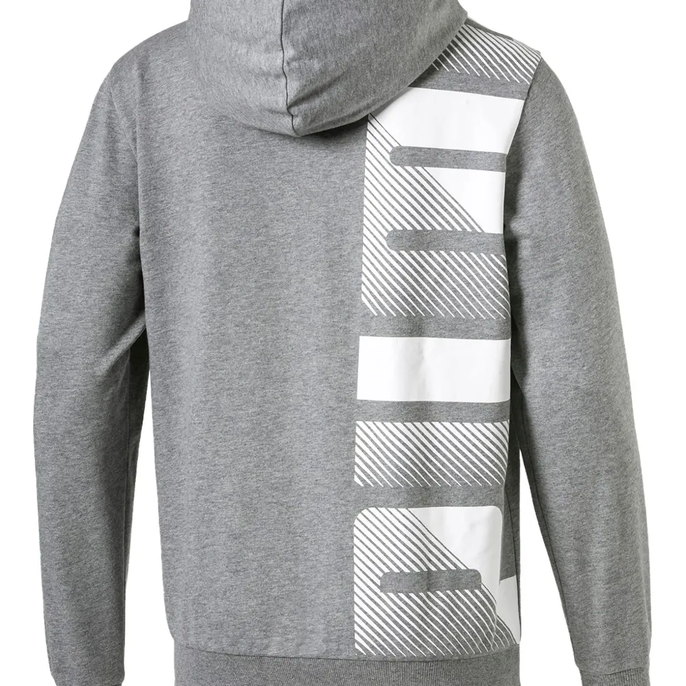 серый худи с принтом логотипа, застежкой-молнией, кулиской на капюшоне, длинными рукавами и передним карманом
