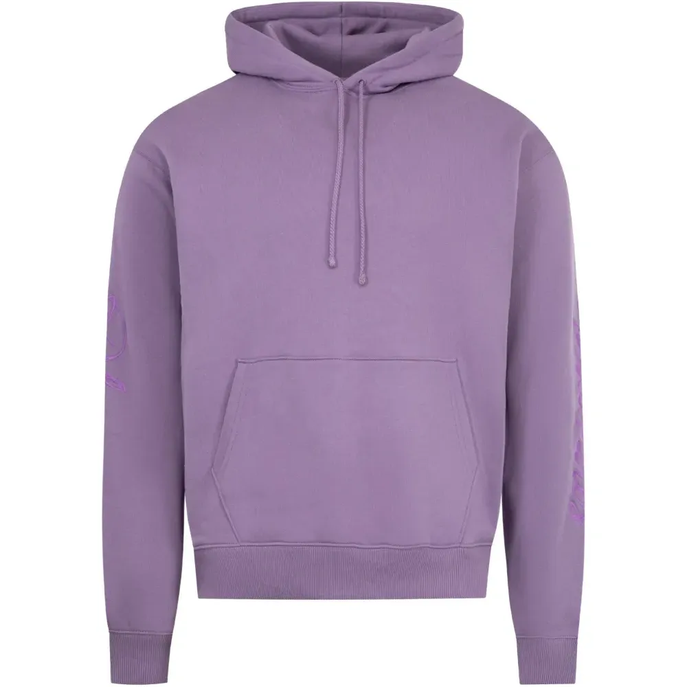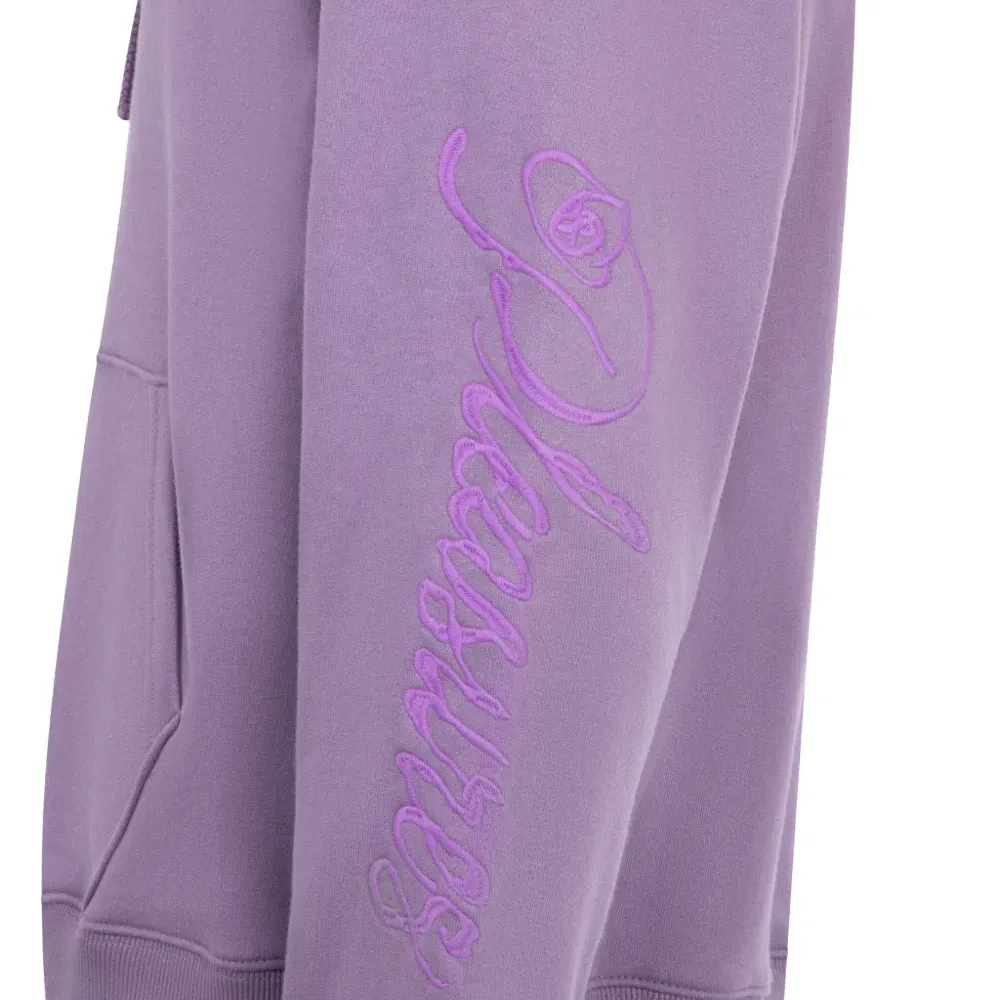 фиолетовый капюшон на шнурке, передний карман-кенгуру, длинные рукава, ребристый низ изделия, ребристые манжеты