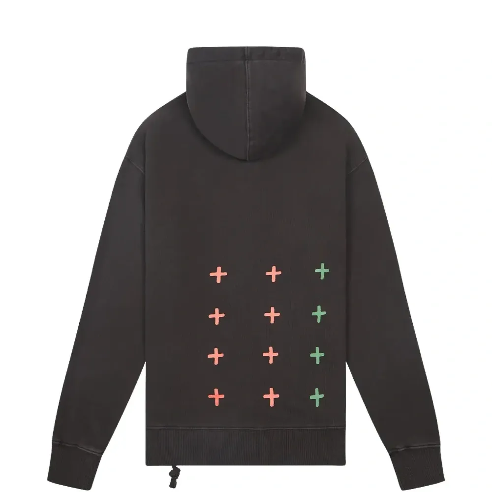выцветшая черная толстовка с капюшоном, передним карманом-кенгуру, шнурком, графическим принтом на спине, графическим принтом
