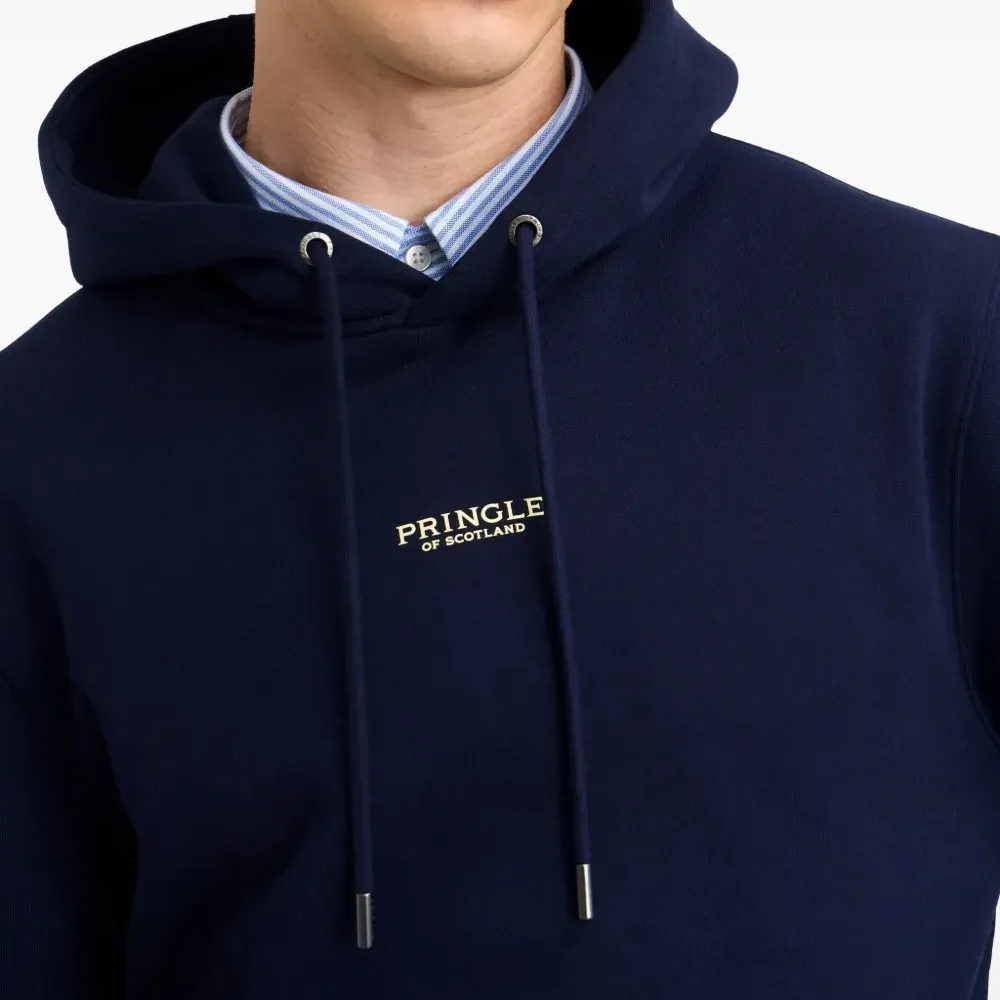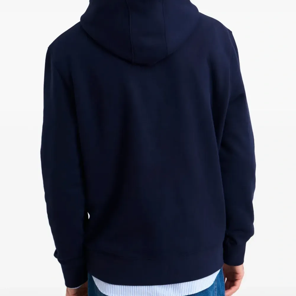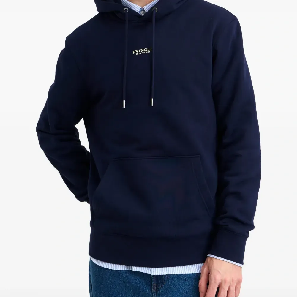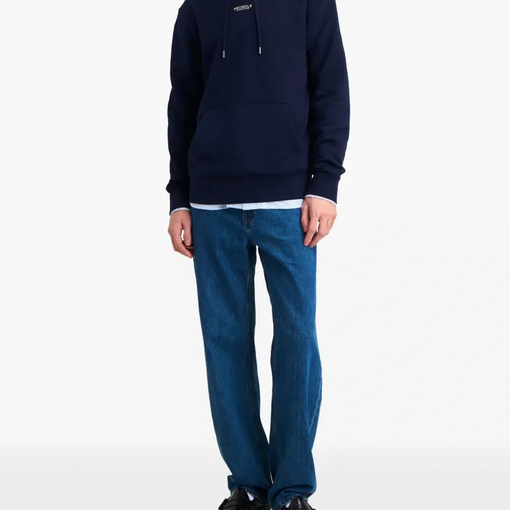 синий худи с кулиской, карманом-«кенгуру», тональной отстрочкой, ребристым низом и манжетами