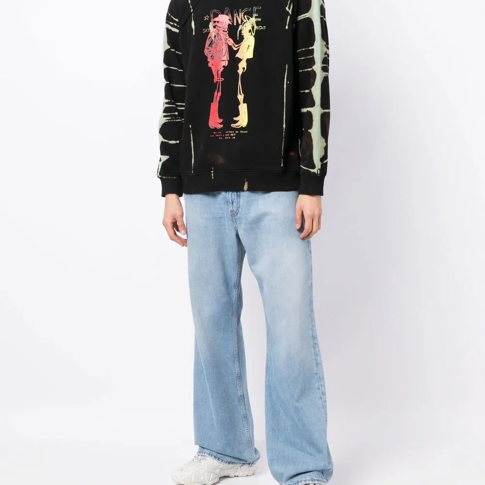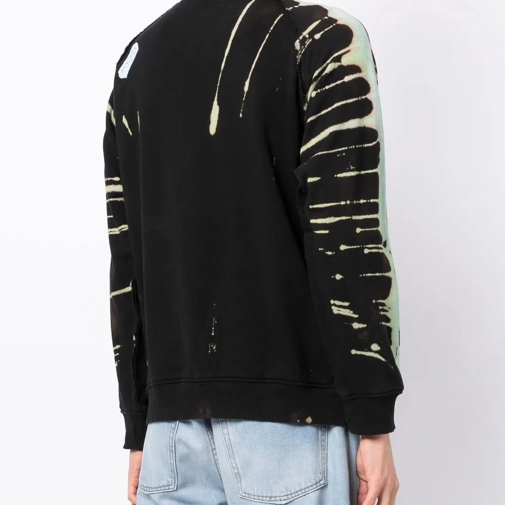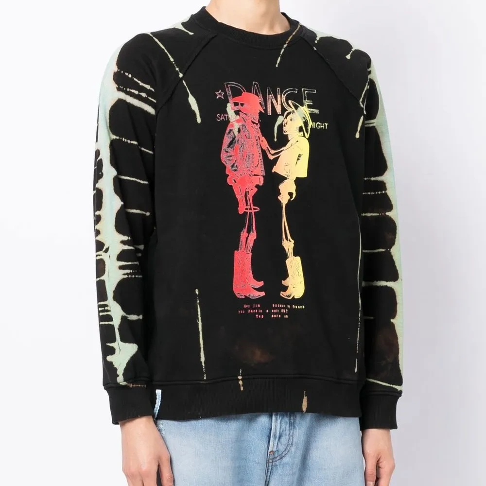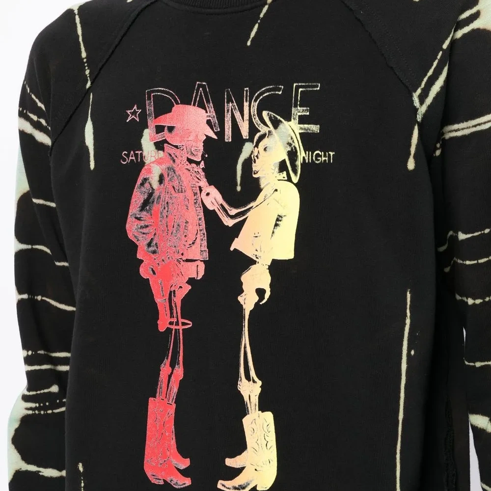 Черный/разноцветный, хлопок, эффект обесцвечивания, принт с изображением скелета, круглый вырез, длинные рукава реглан, манжеты в рубчик и подол в рубчик.