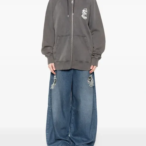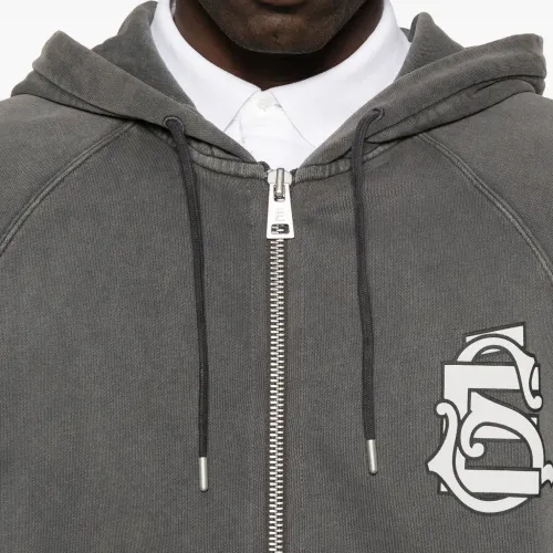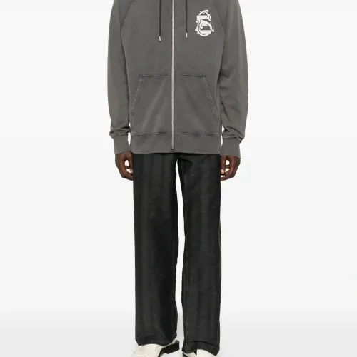 угольно-серый эмблема с логотипом застёжка-молния по всей длине капюшон рукава-реглан карман-кенгуру