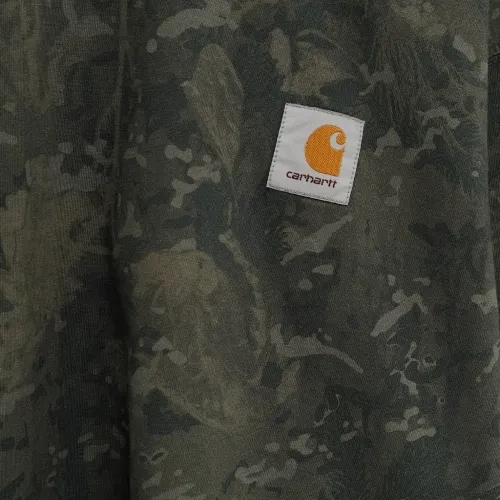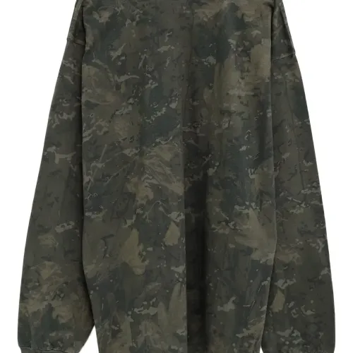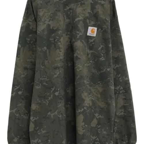 зелёный камуфляжный узор, нашивка с логотипом, длинные рукава, круглый вырез, манжеты в рубчик