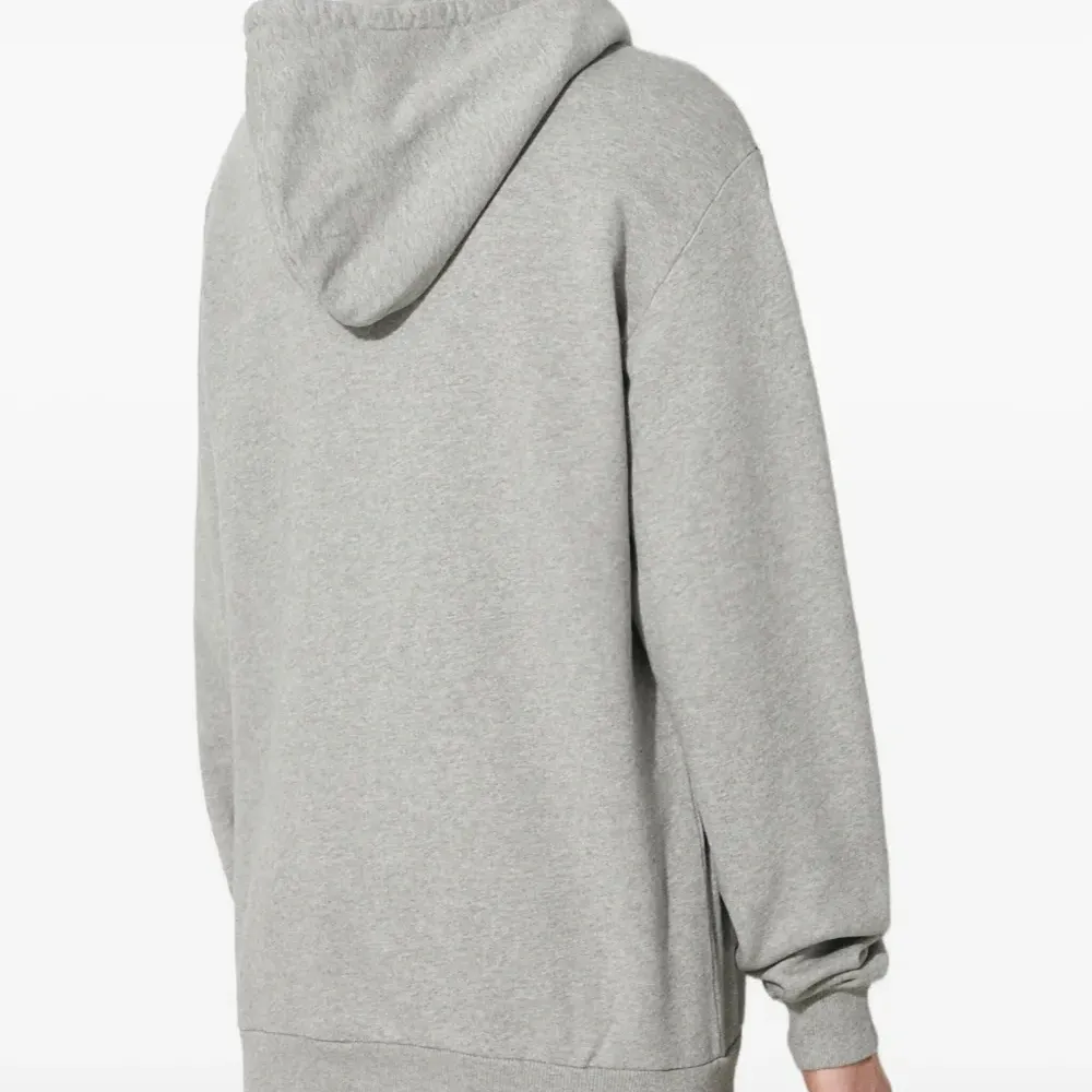 серый худи с логотипом, завязками на капюшоне, длинными рукавами и ребристыми манжетами