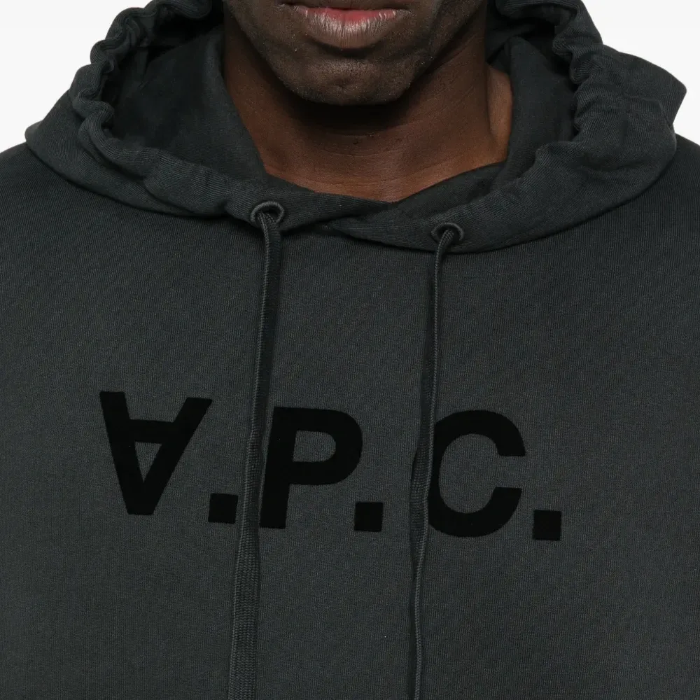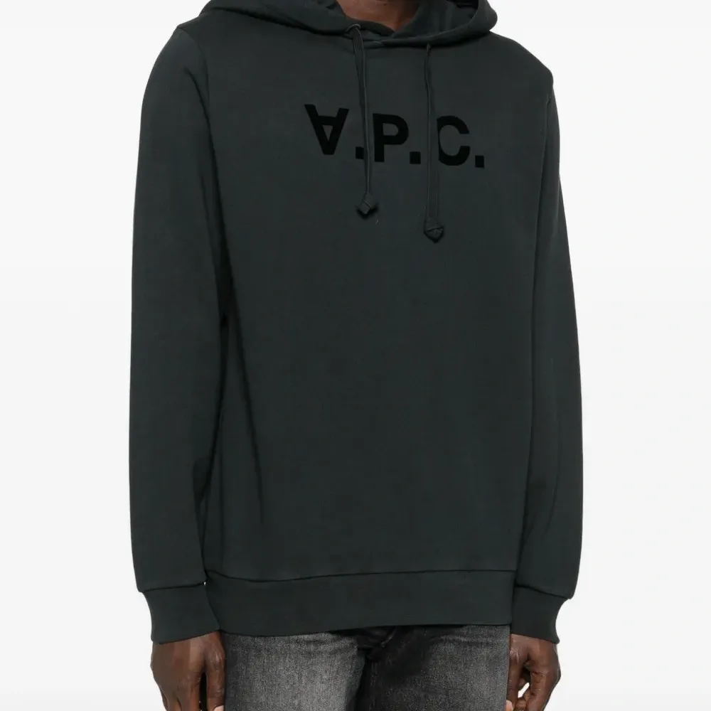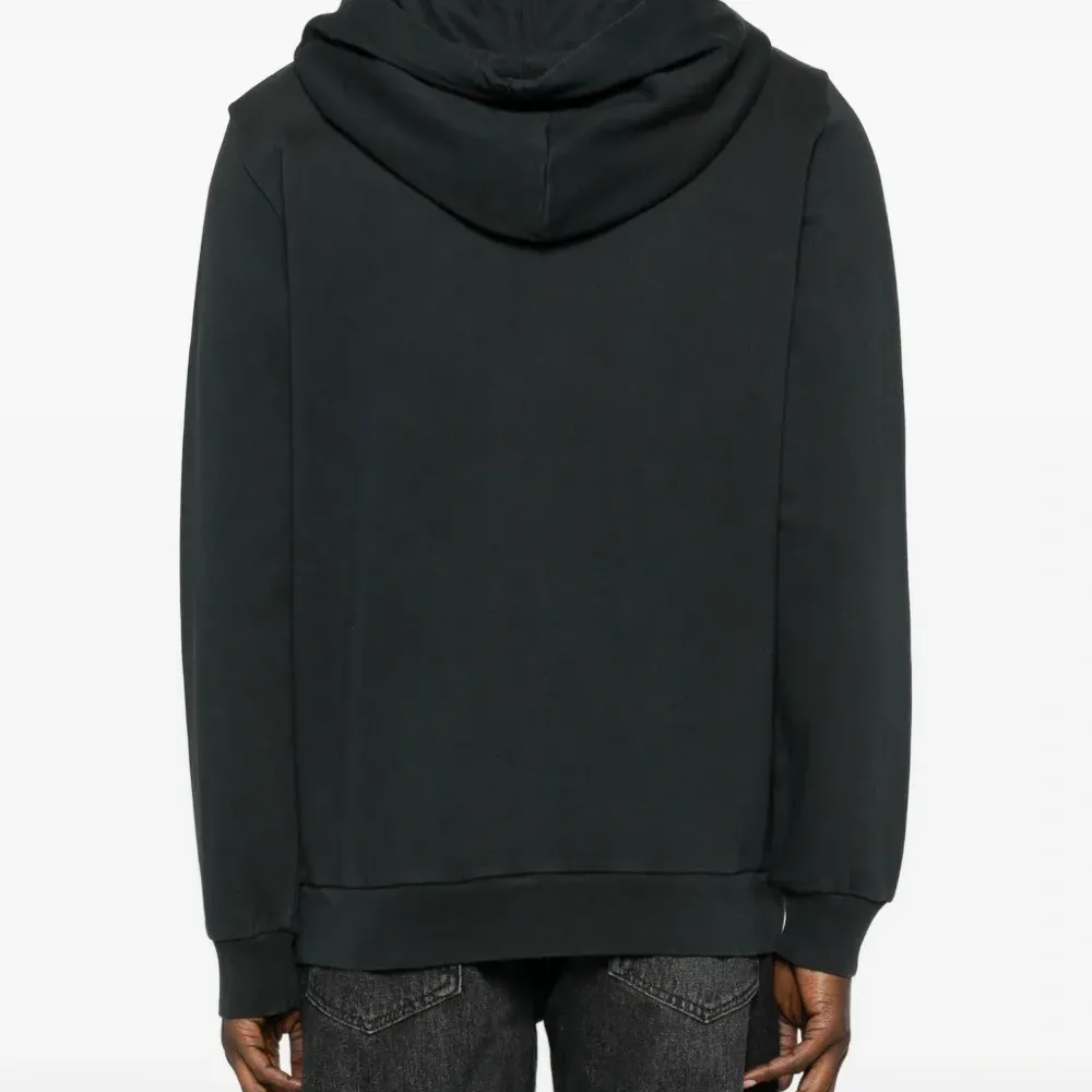 черная толстовка с логотипом, кулиской на капюшоне, ребристыми краями и манжетами, длинными рукавами