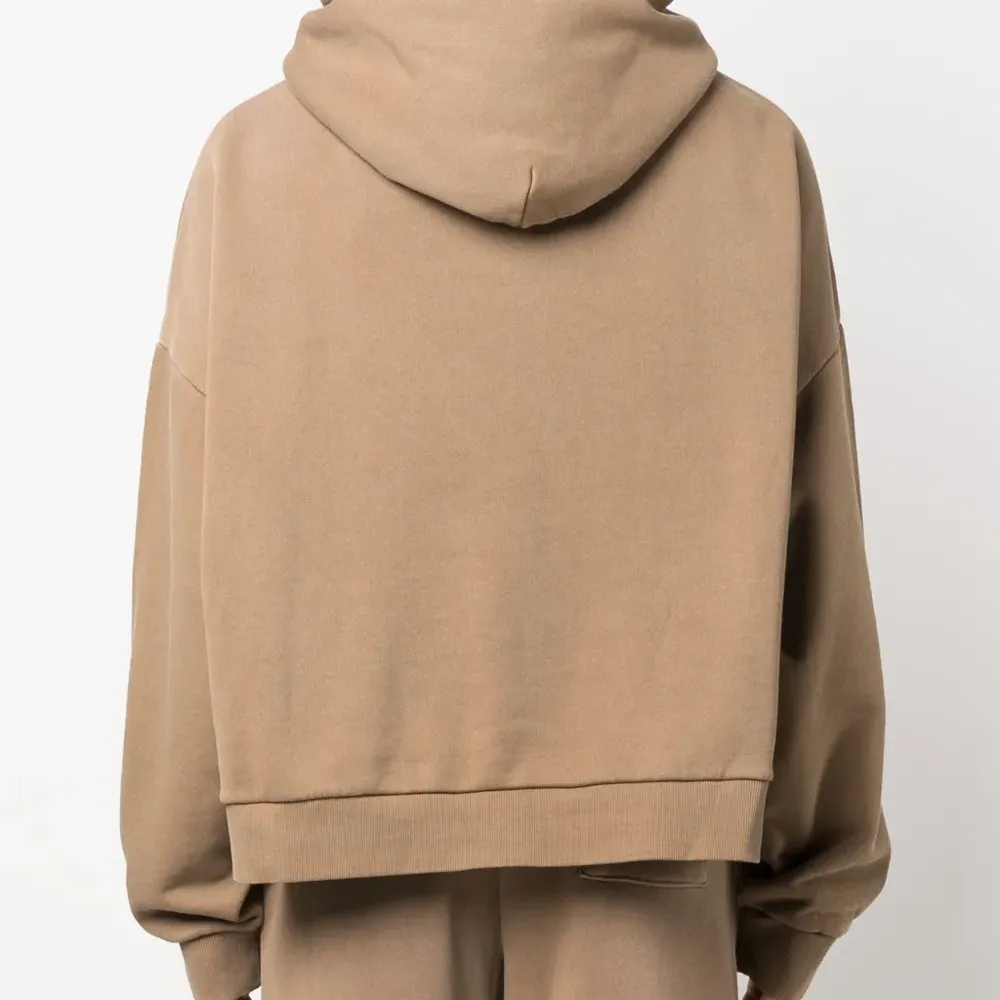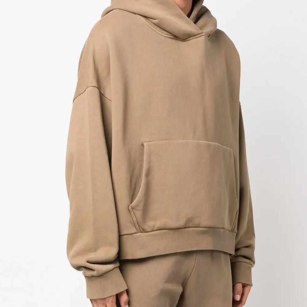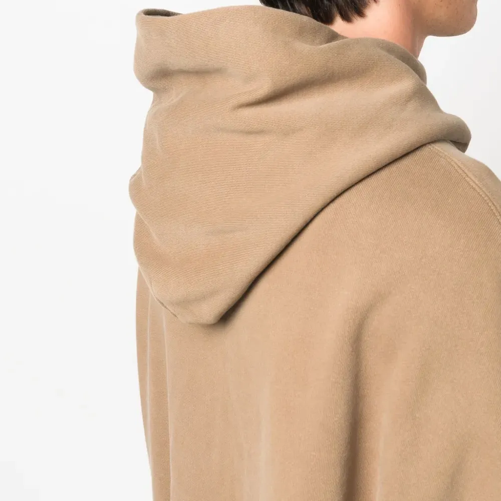 Бежево-коричневый, органический хлопок, эффект потертости, объемный капюшон, приспущенные плечи, длинные рукава, карман-муфта и прямой подол. Это унисекс-модель. Обратите внимание, что для нее используется мужская размерная сетка. Узнать больше о том, какие товары получают отметку «Ответственный выбор», можно из материала «Как мы оцениваем экологичность и этичность».