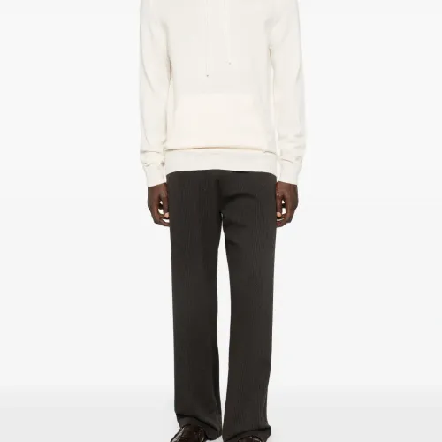 бежевое худи на кулиске с карманом-кенгуру и ребристой отделкой