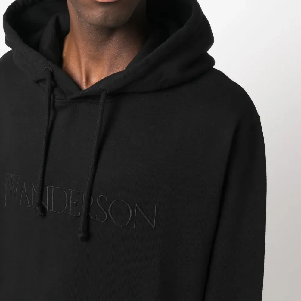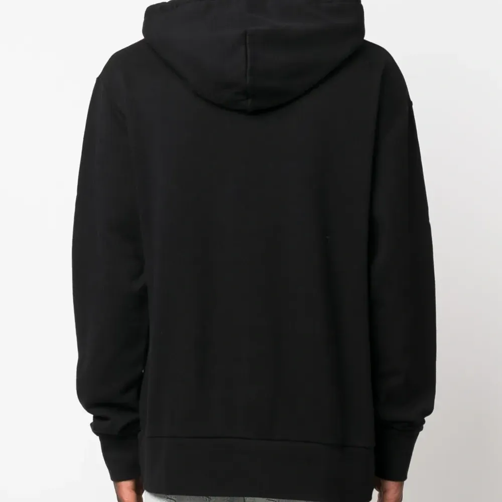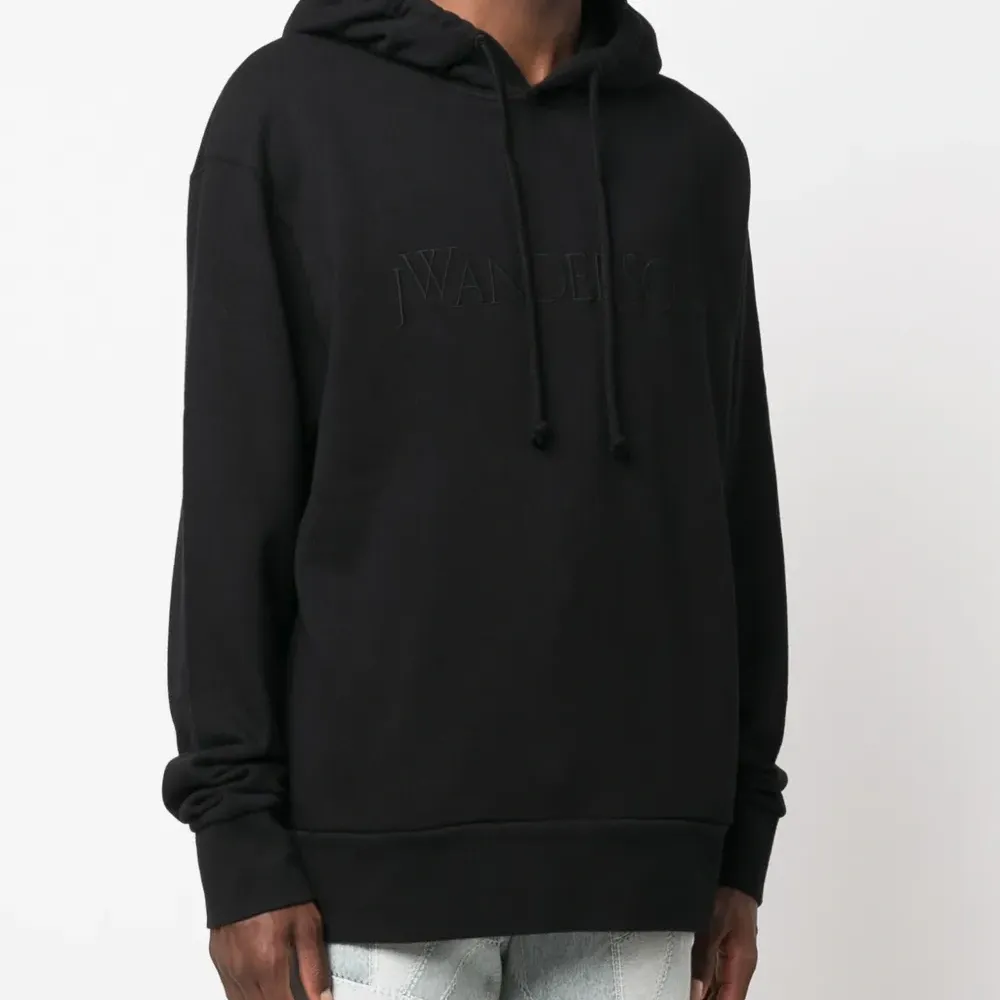 Приспущенные плечи, вышитый логотип спереди, затягивающийся на шнурок капюшон и длинные рукава.