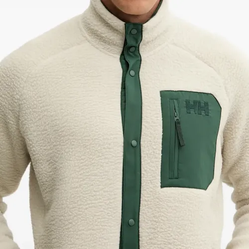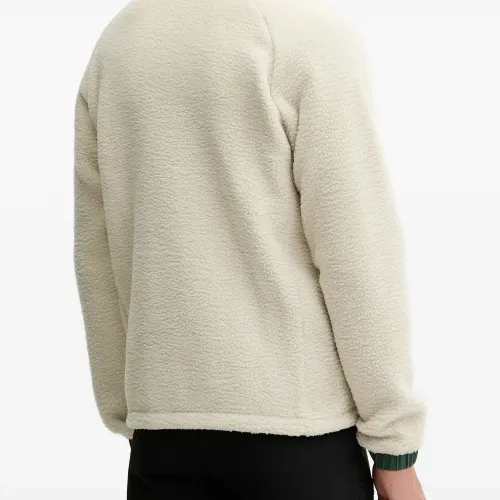 кремовый цвет, воротник-стойка, застежка на пуговицы, нагрудный карман, логотип, манжеты в рубчик