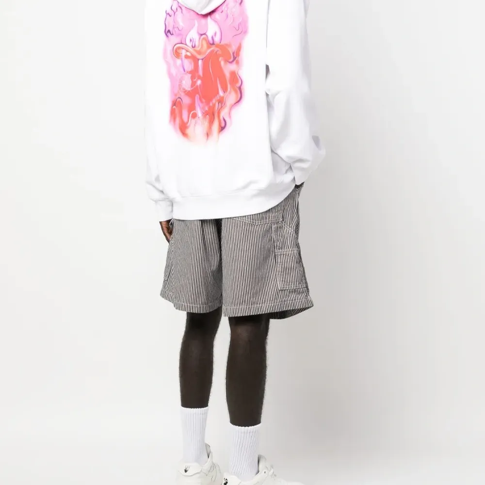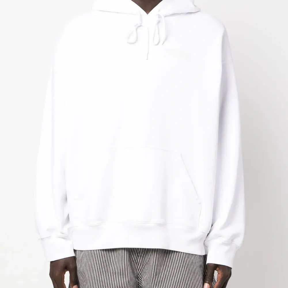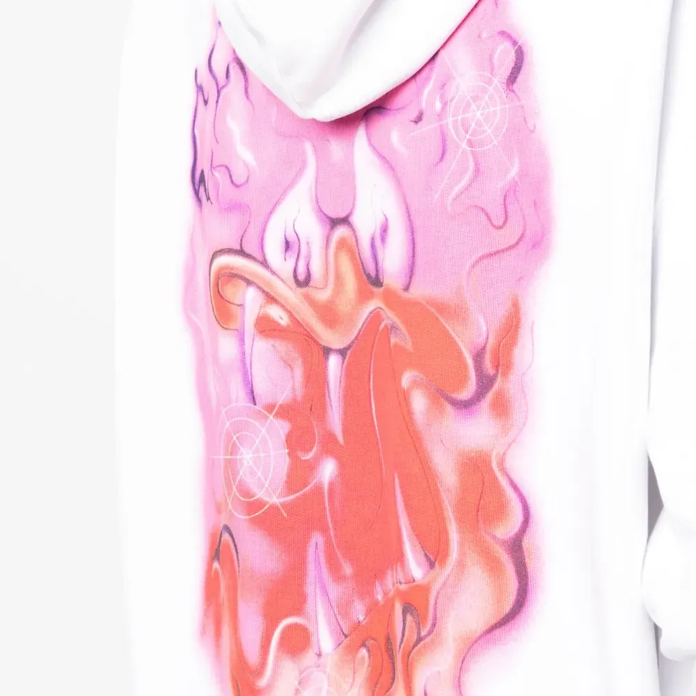 Расцветка Cloud White, хлопок, графичный принт на спине, приспущенные плечи, затягивающийся на шнурок капюшон, длинные рукава и карман-муфта.