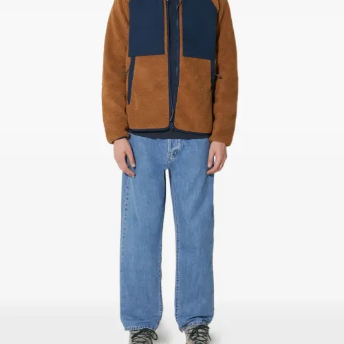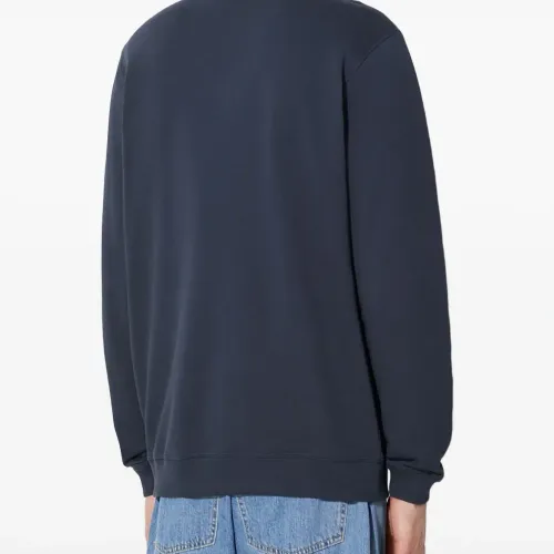 темно-синий свитер с круглым вырезом, нашивкой с логотипом, длинными рукавами, ребристыми манжетами и подолом