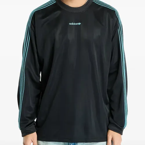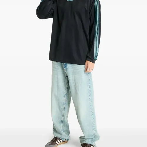 черный лонгслив с полосатыми деталями и круглым вырезом