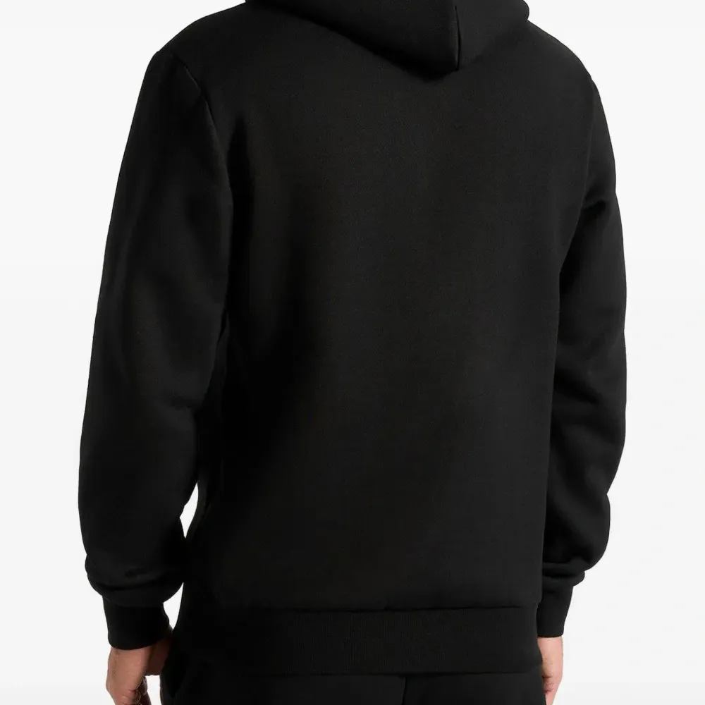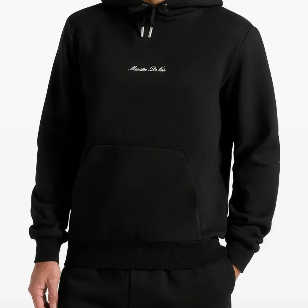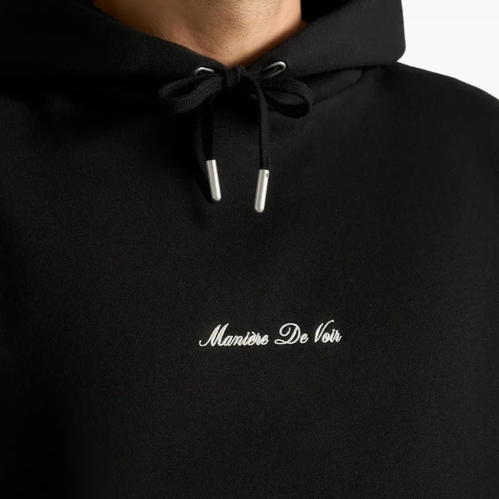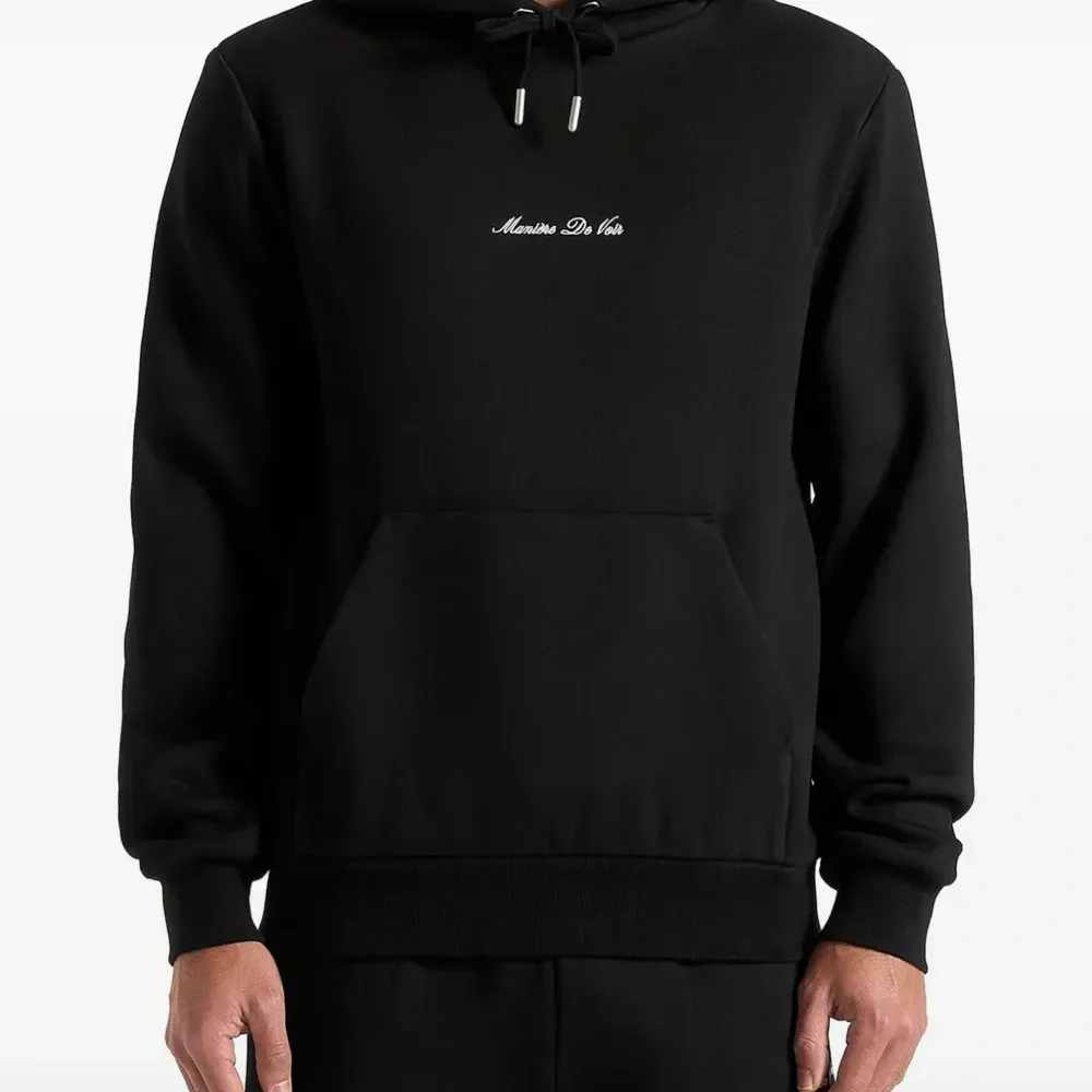 чёрные шнурки, карман-кенгуру, фирменная надпись, заниженная линия плеч, свободный крой