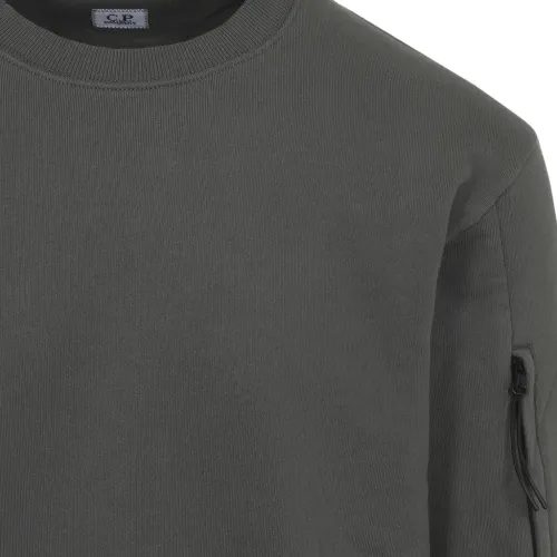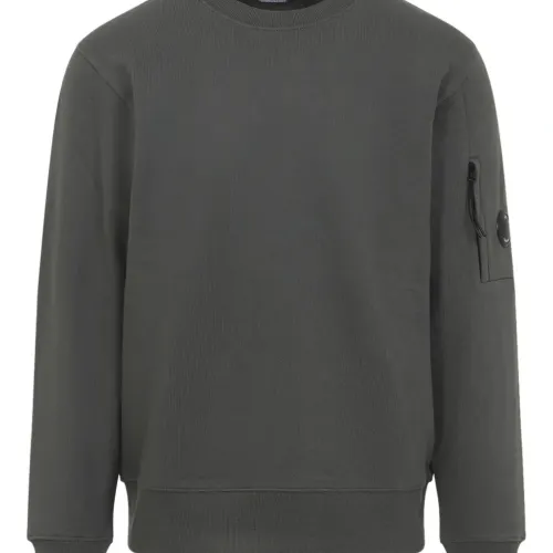 джемпер цвета "темная сталь" с круглым вырезом, длинными рукавами, застежкой-молнией на кармане и логотипом