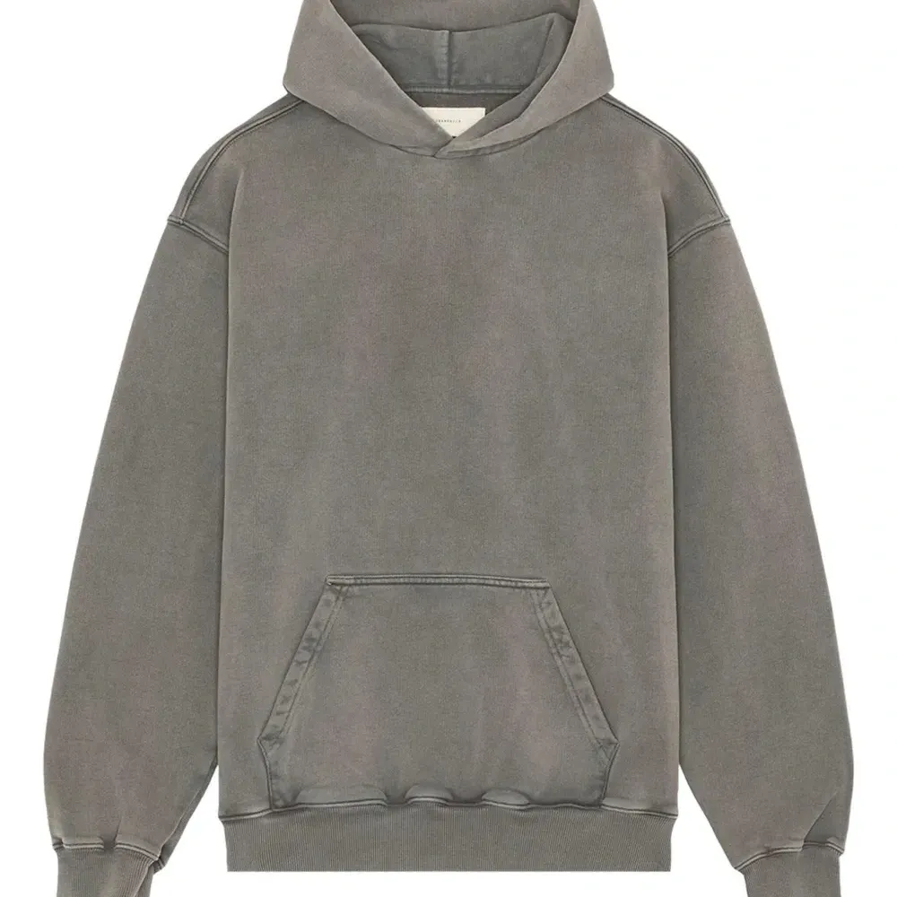 серый худи с накладным карманом, ребристыми манжетами и низом, тональная строчка