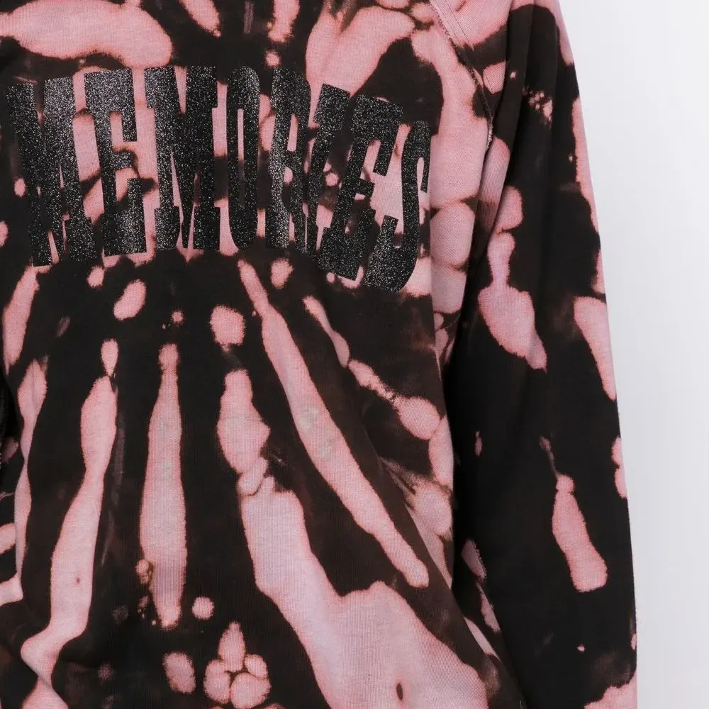 Черный, розовый, хлопок, эффект обесцвечивания, принт с надписью спереди, блестящий материал, круглый вырез, рукава реглан, манжеты в рубчик и подол в рубчик.