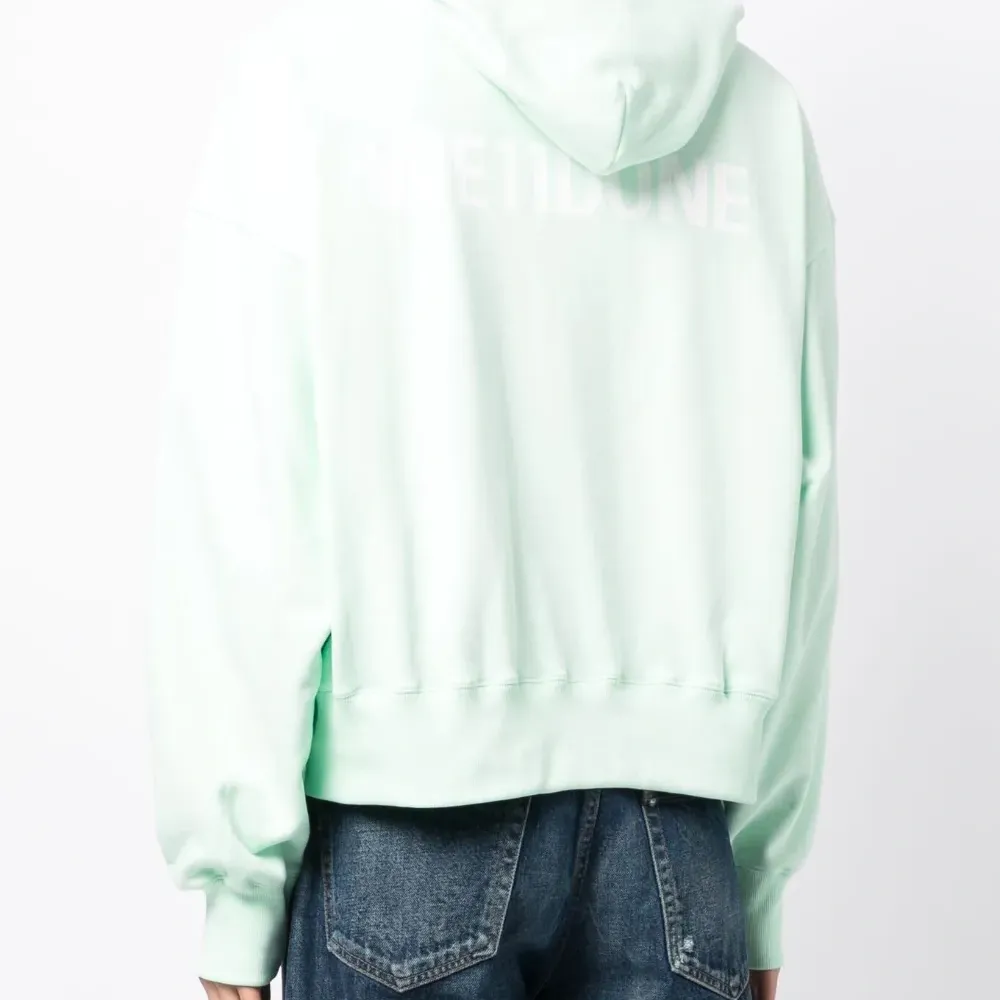 Мятно-зеленый, хлопок, нашивка с логотипом на груди, классический капюшон, длинные рукава и прямой подол.