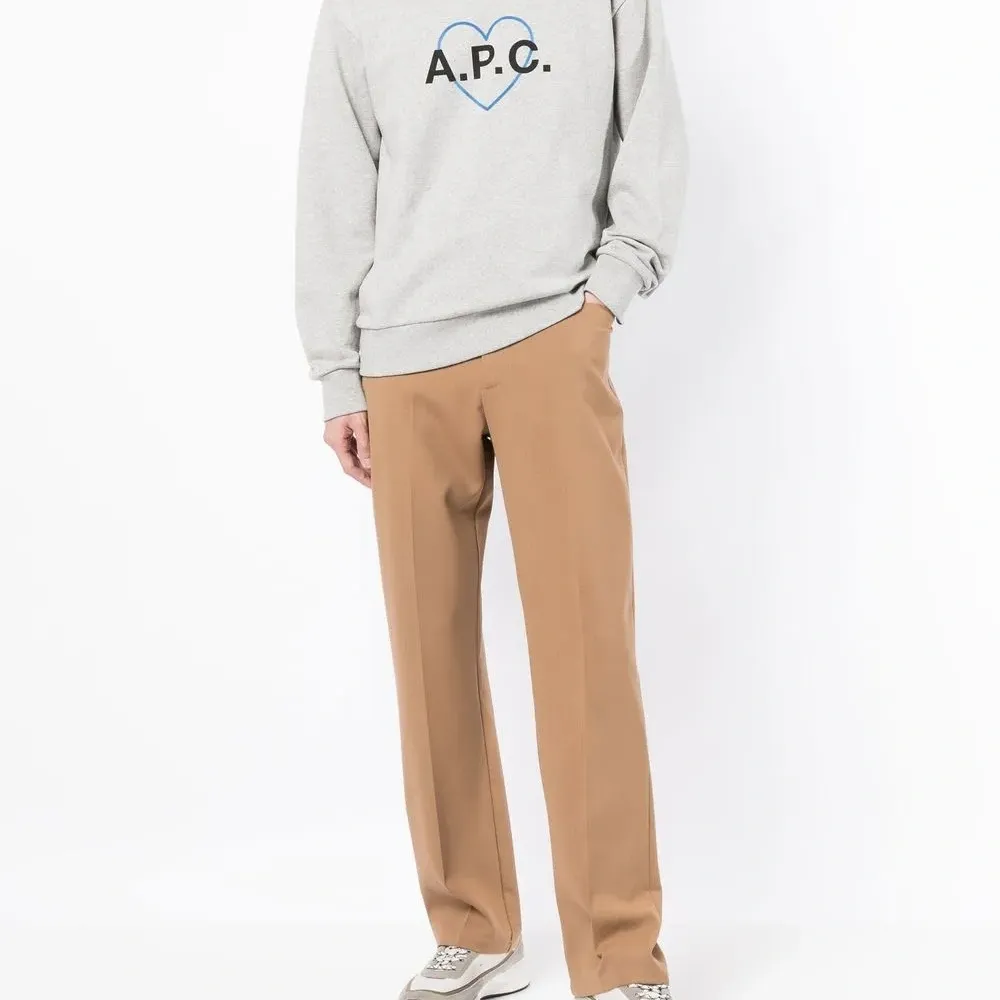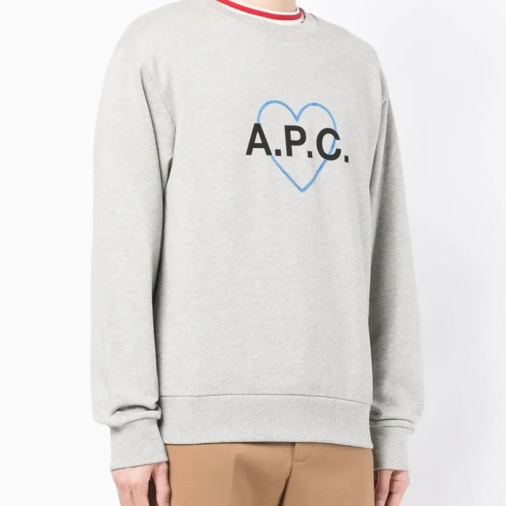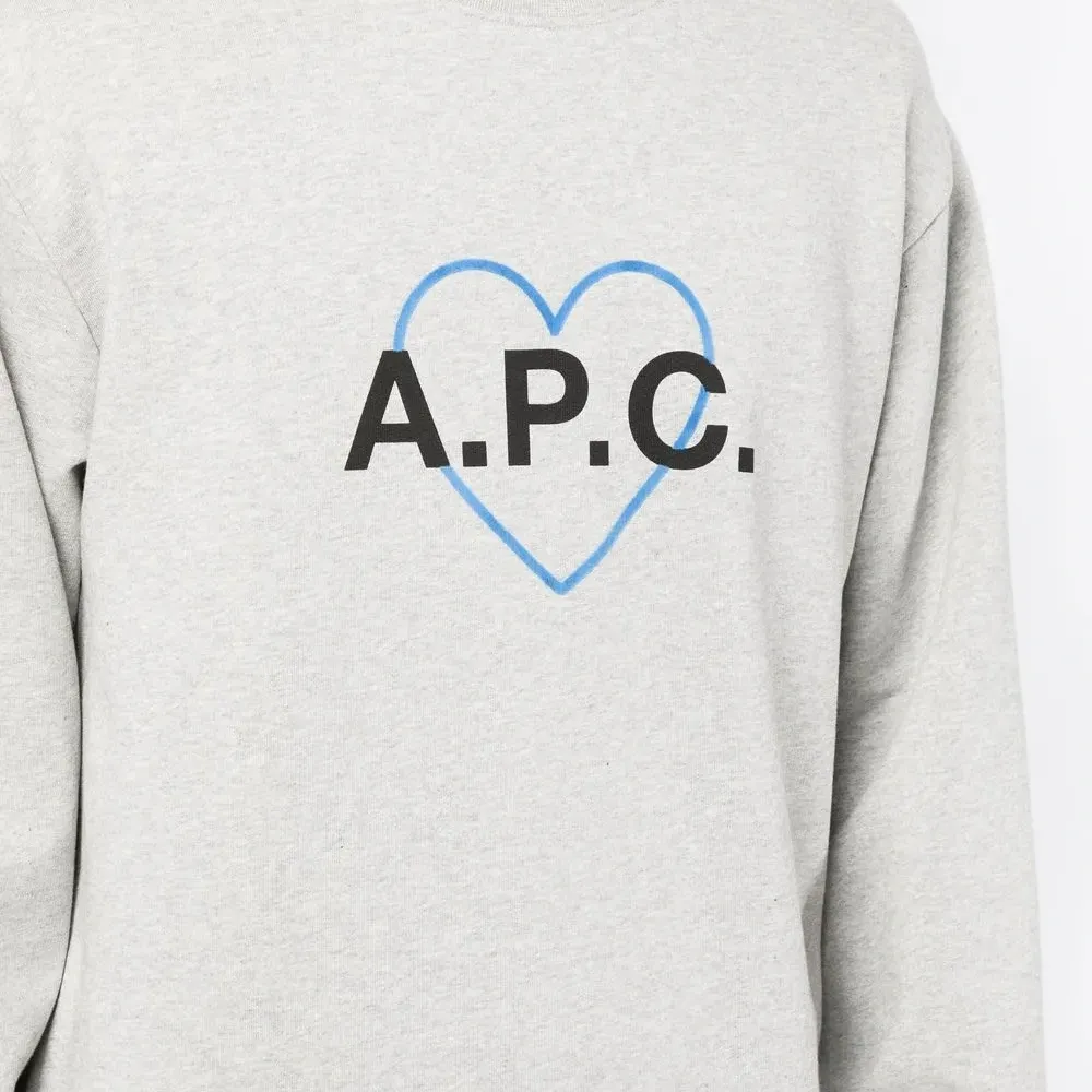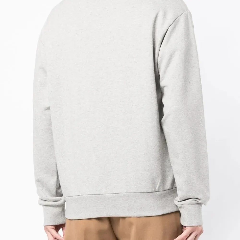 Светло-серый, смесовый хлопок, принт с логотипом на груди, круглый вырез и длинные рукава.