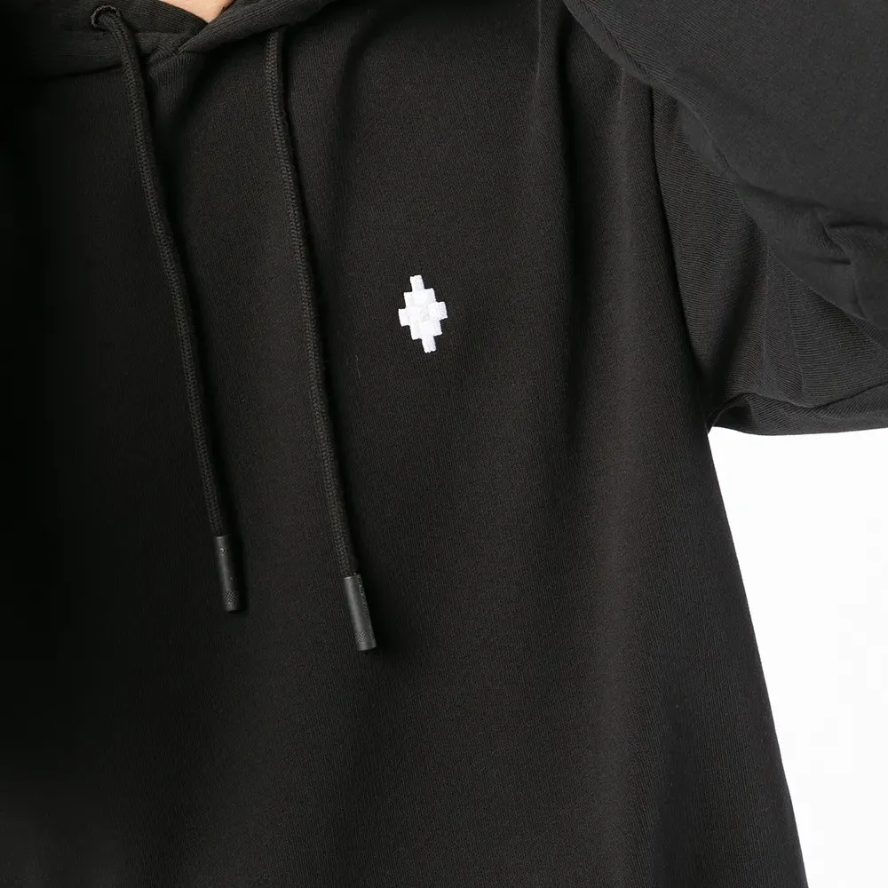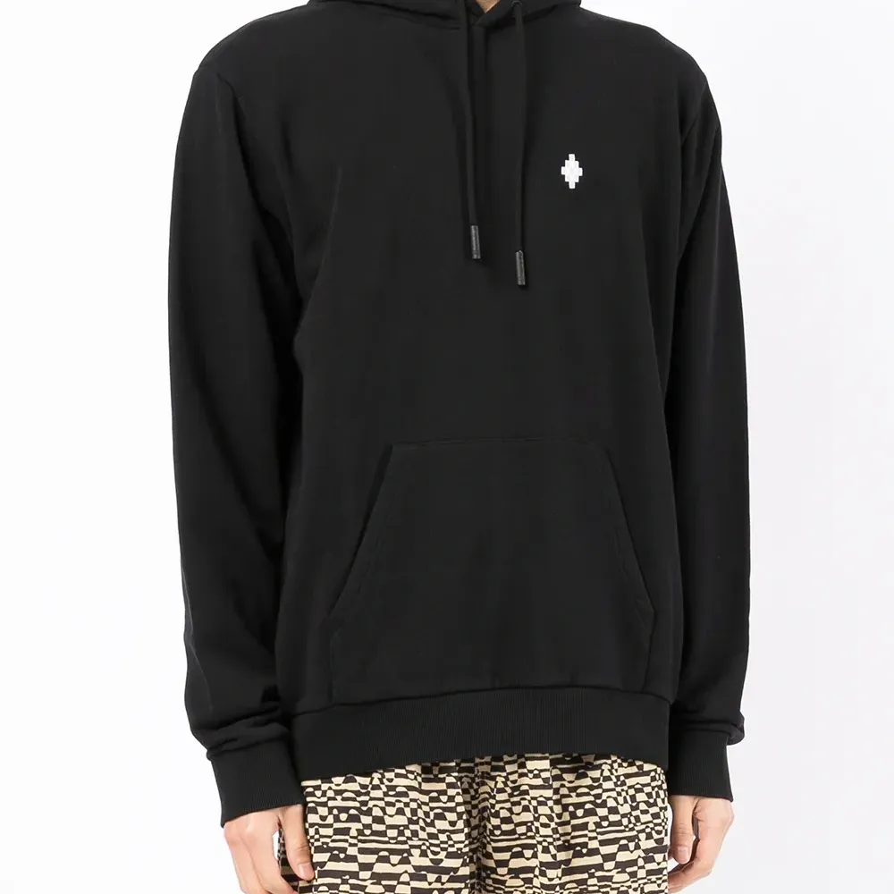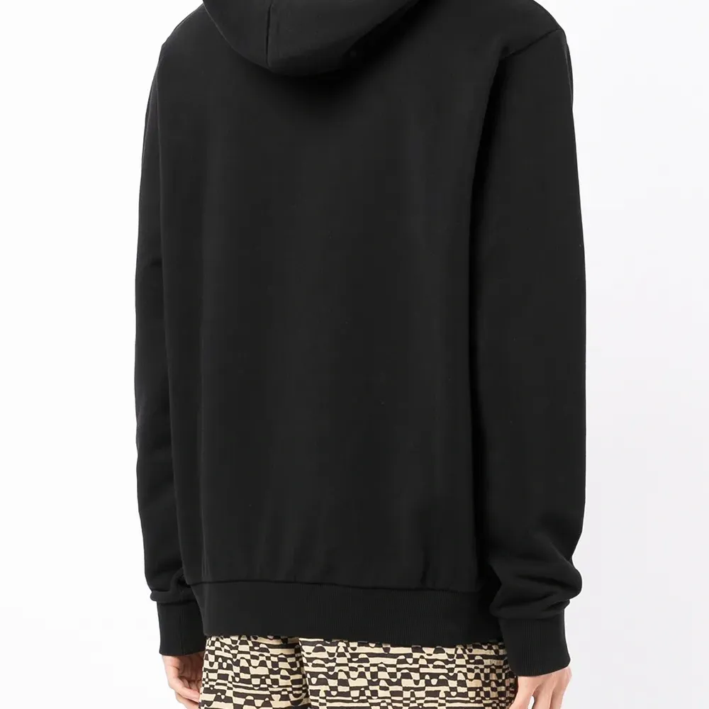 Принт с логотипом на груди, затягивающийся на шнурок капюшон, длинные рукава, карман-муфта и отделка в рубчик. Цвет: черный.