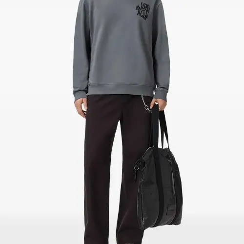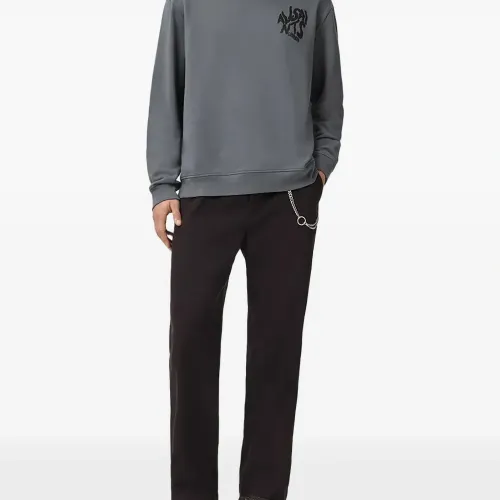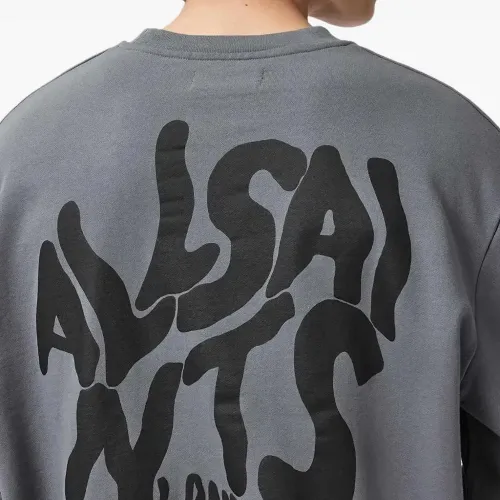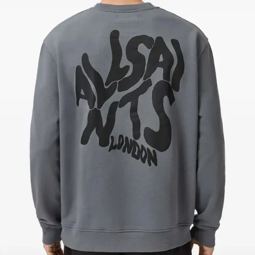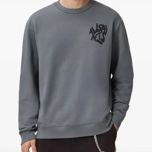 серый свитшот с круглым вырезом, длинными рукавами, принтом на спине, принтом на груди, ребристым подолом