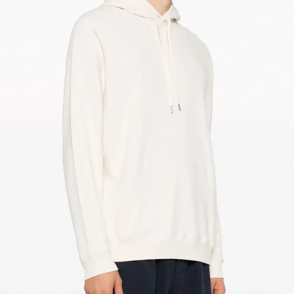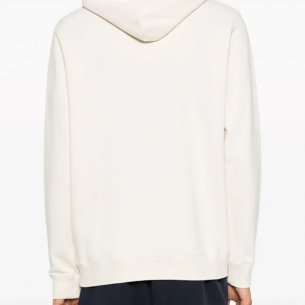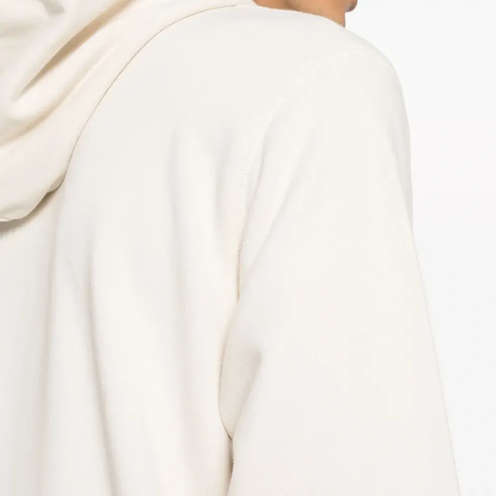 Светло-бежевый, хлопок, модель анорак, затягивающийся на шнурок капюшон, длинные рукава, карман-муфта и прямой подол.