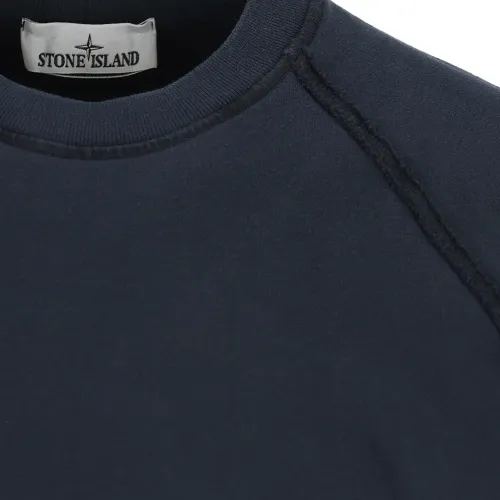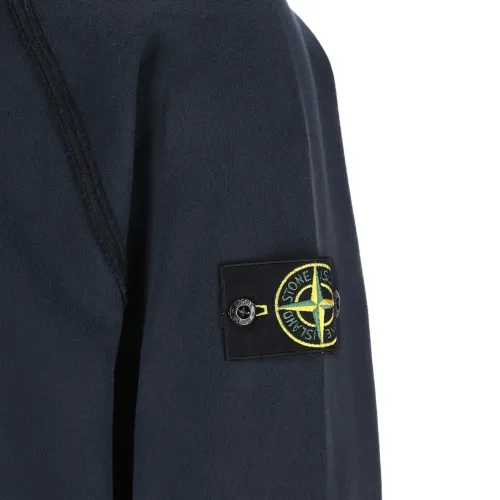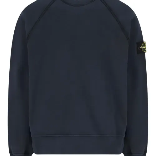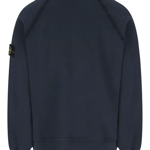 синий хлопковый лонгслив с круглым вырезом, ребристым низом, нашивкой с логотипом, фирменной съемной нашивкой Compass