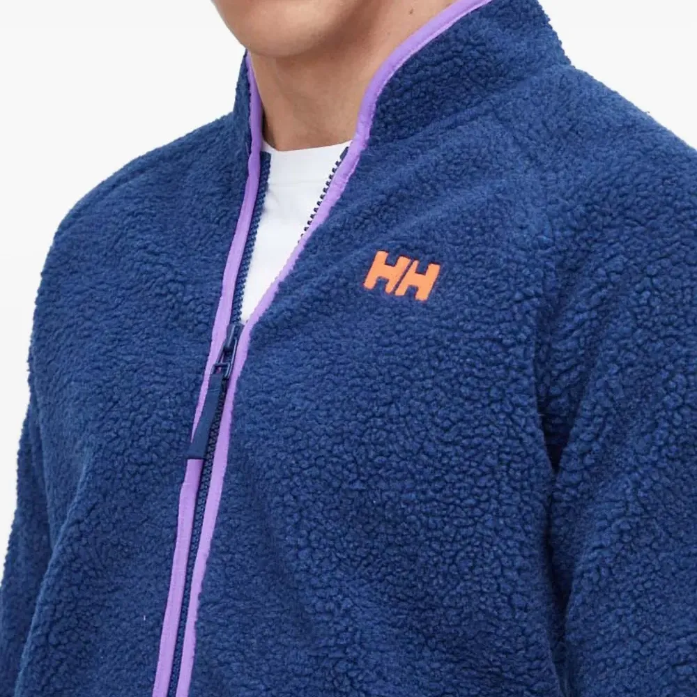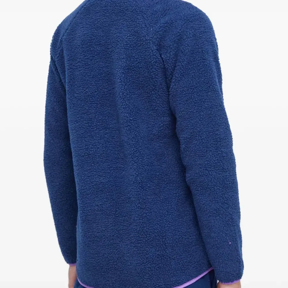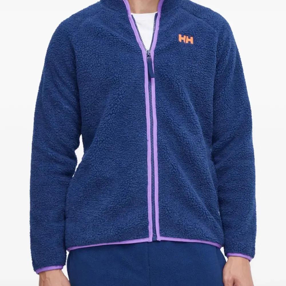 синий флис, текстура, застежка на молнии, логотип, воротник-стойка, контрастная отделка