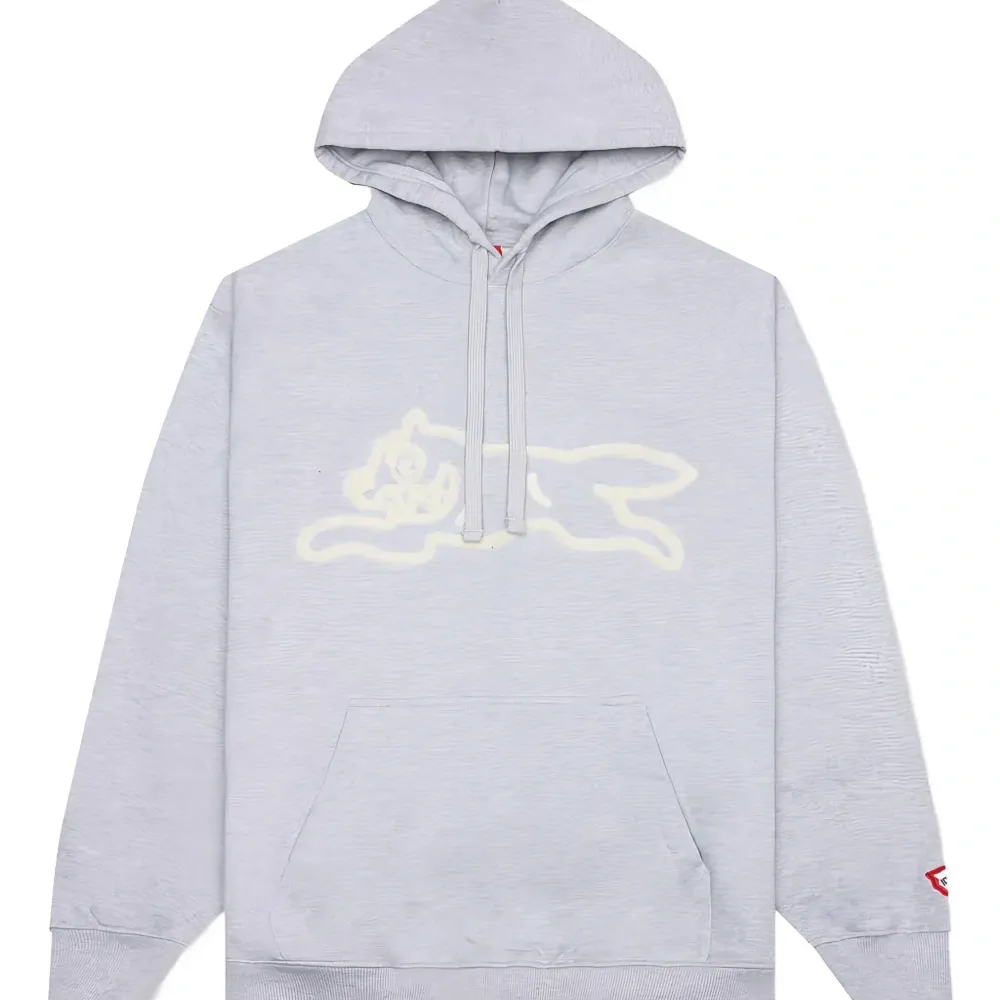 серый худи на завязках, длинные рукава, карман-кенгуру, принт Running Gos, вышитый логотип