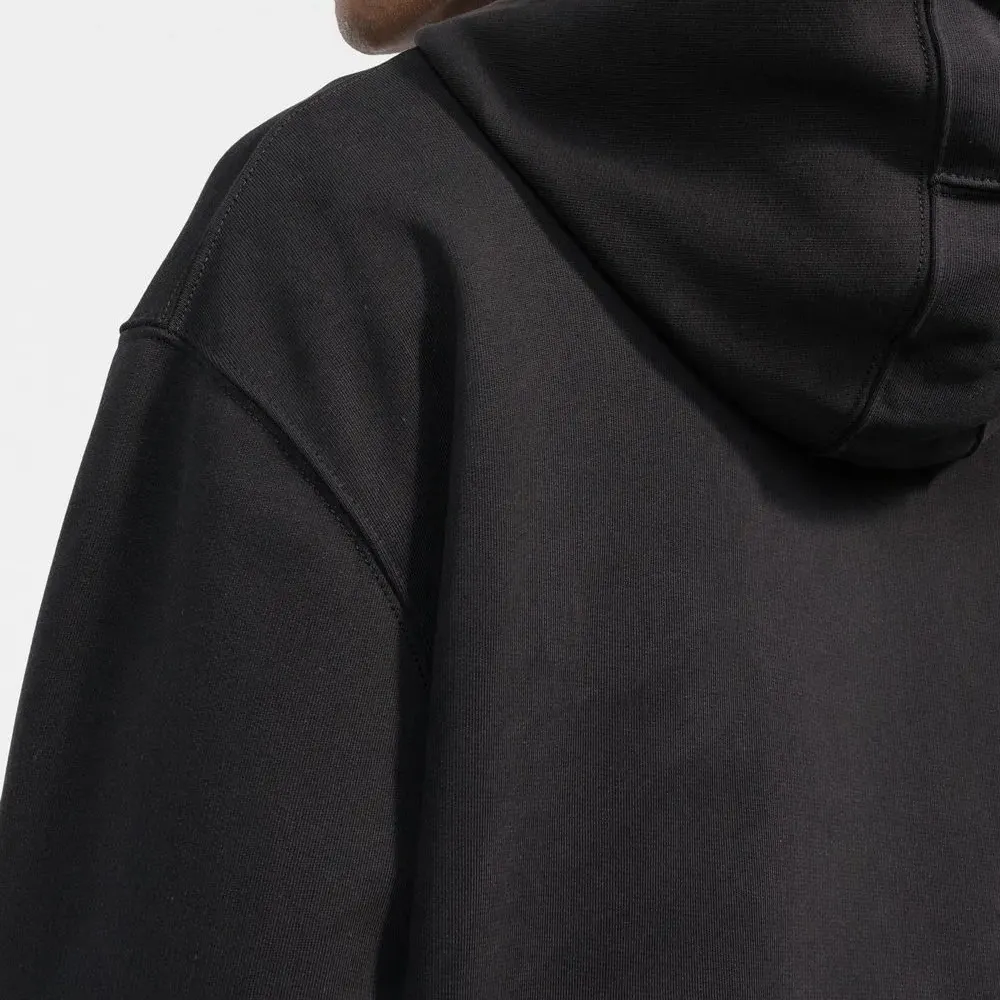 Черный/белый, хлопок, логотип спереди, классический капюшон, длинные рукава и подол в рубчик.