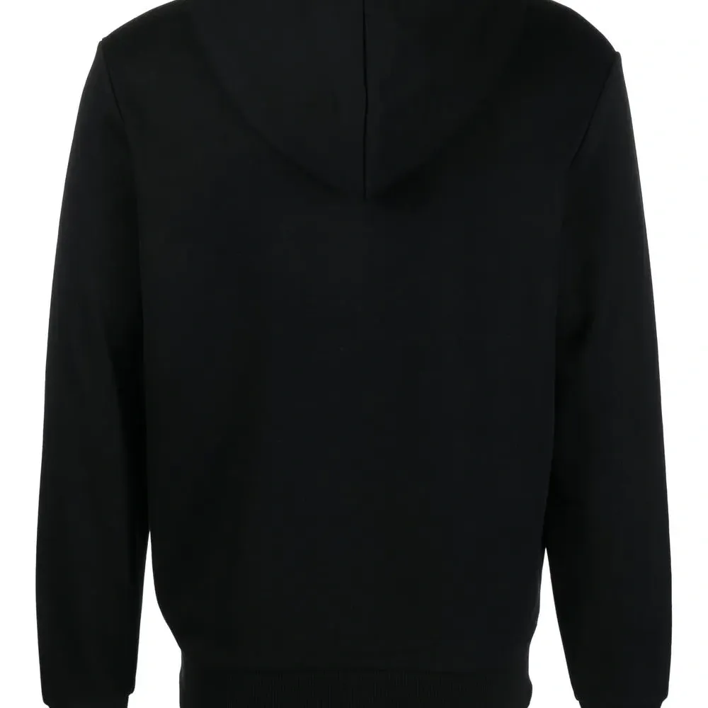 Вышитый логотип на груди, затягивающийся на шнурок капюшон, длинные рукава, накладной карман сбоку и прямой подол.
