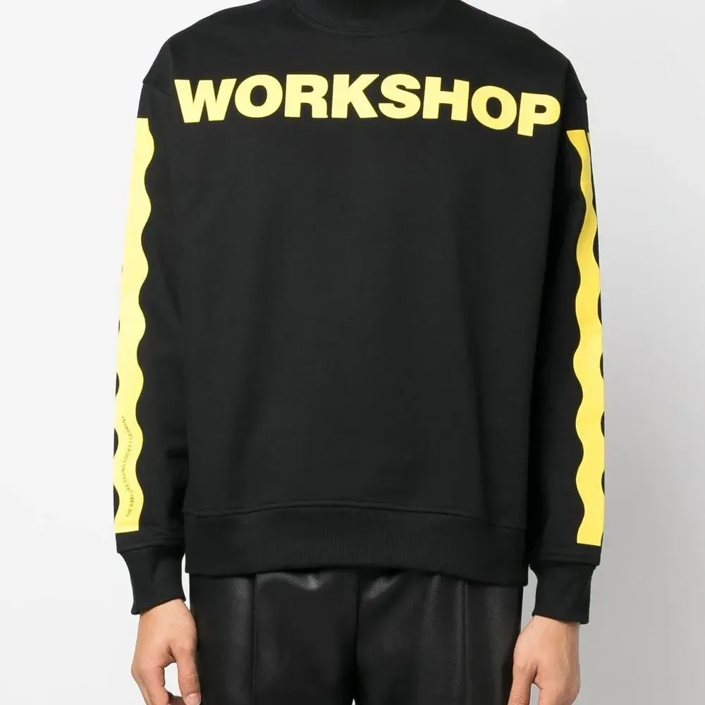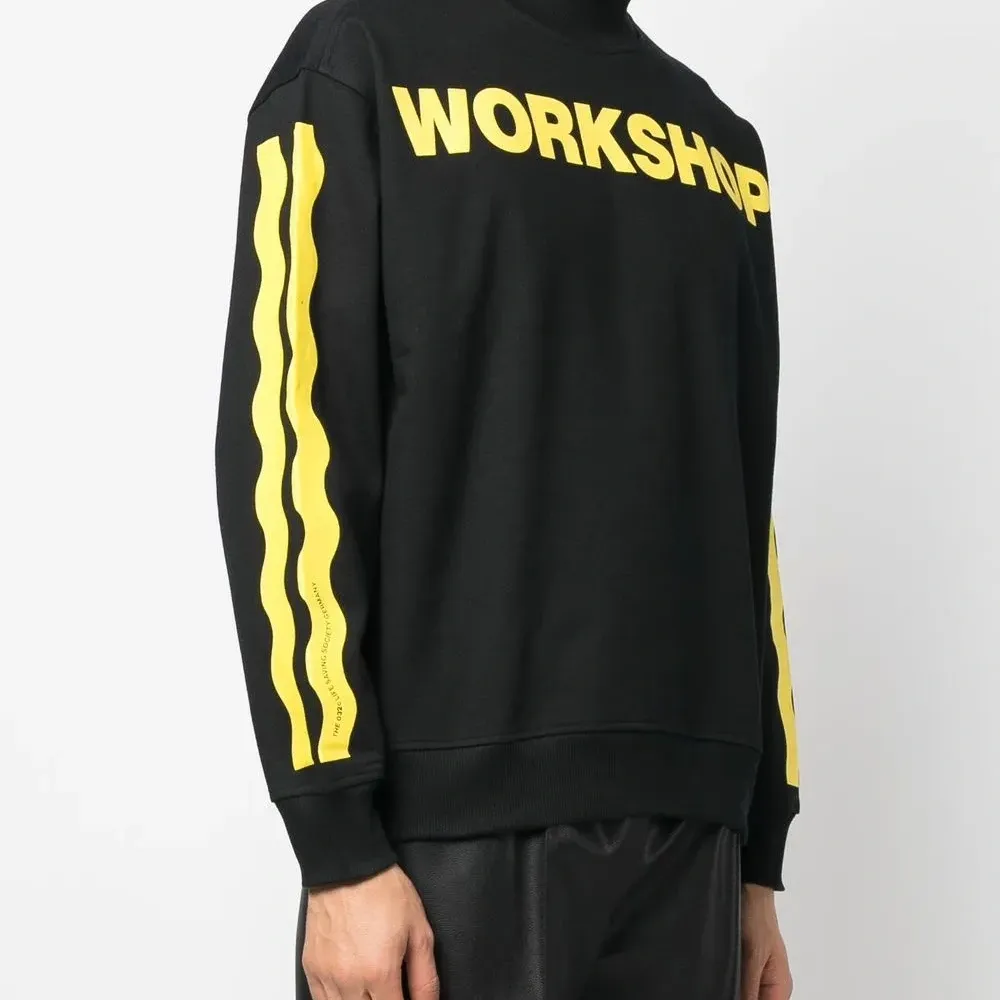 Черный, органический хлопок, принт с надписью спереди, графичный принт на спине, полоска сбоку, круглый вырез, длинные рукава и прямой подол. Ответственный выбор: