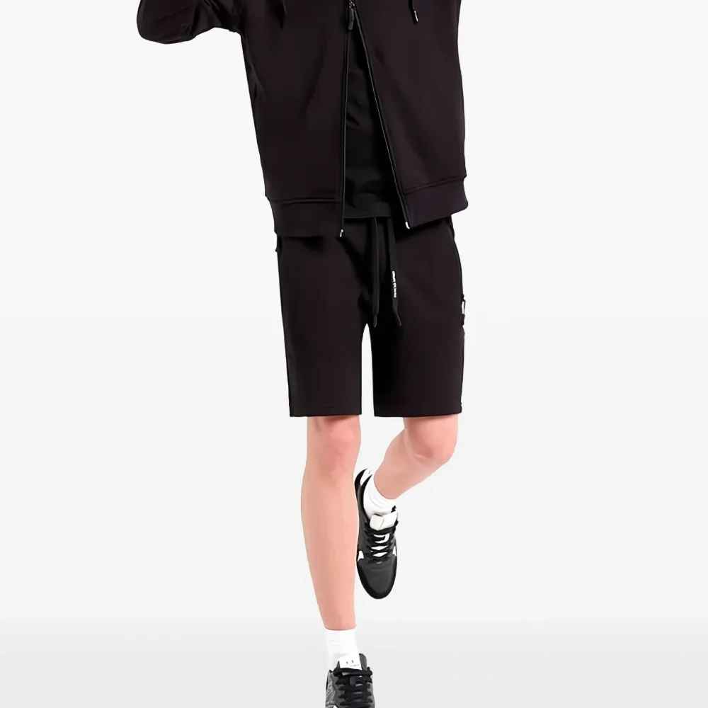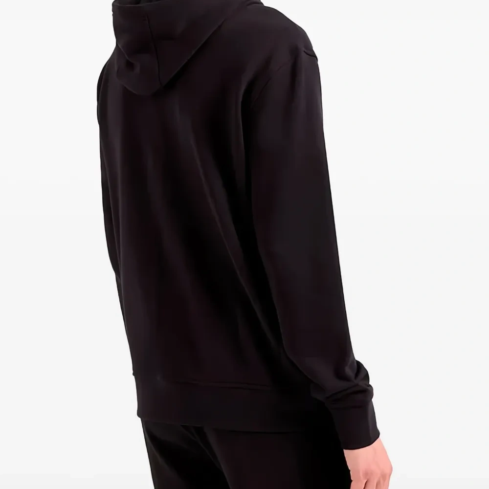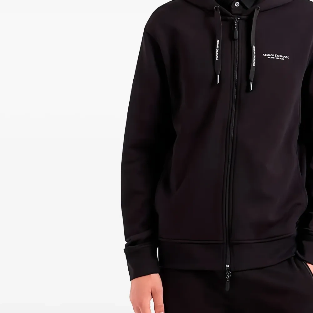 черная толстовка с молнией, логотипом, длинными рукавами и капюшоном на кулиске