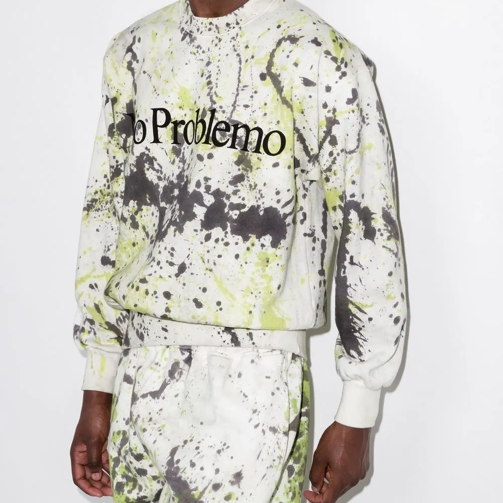 Принт с надписью, живописный принт, круглый вырез, длинные рукава и рукава с узкими манжетами.