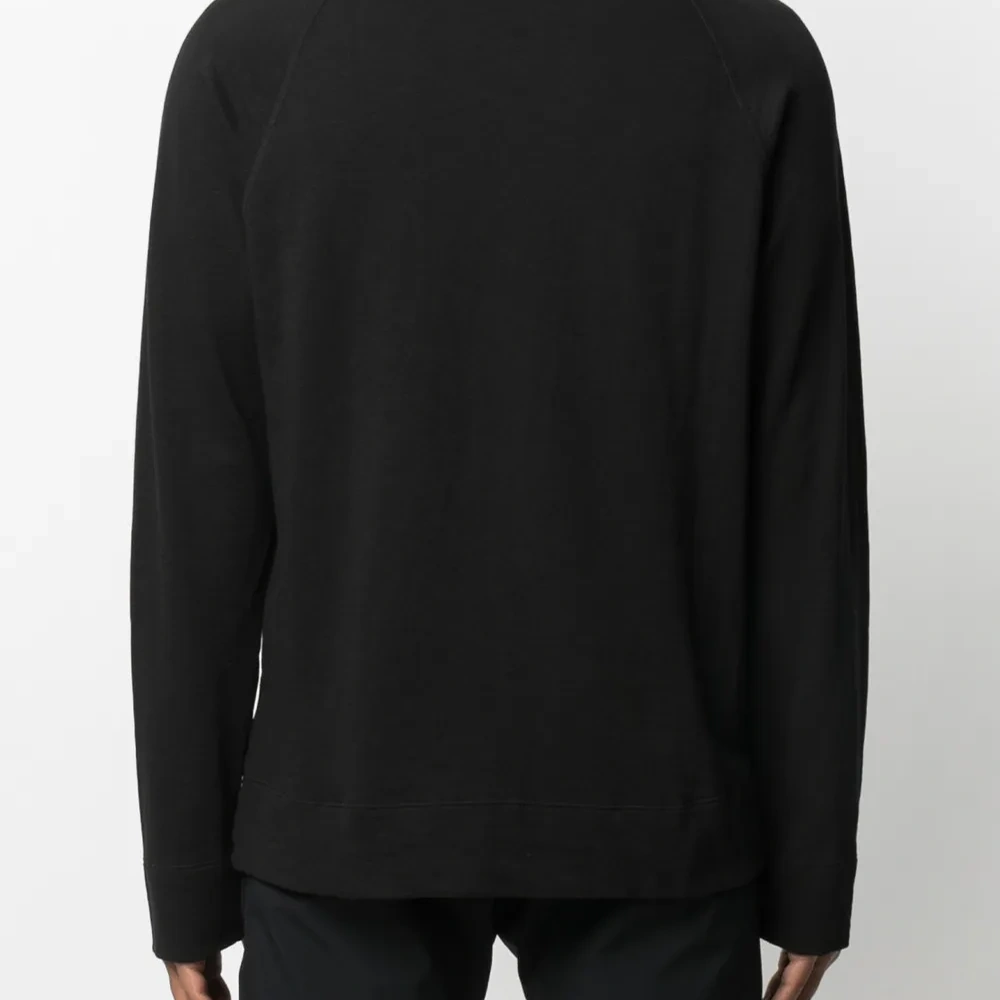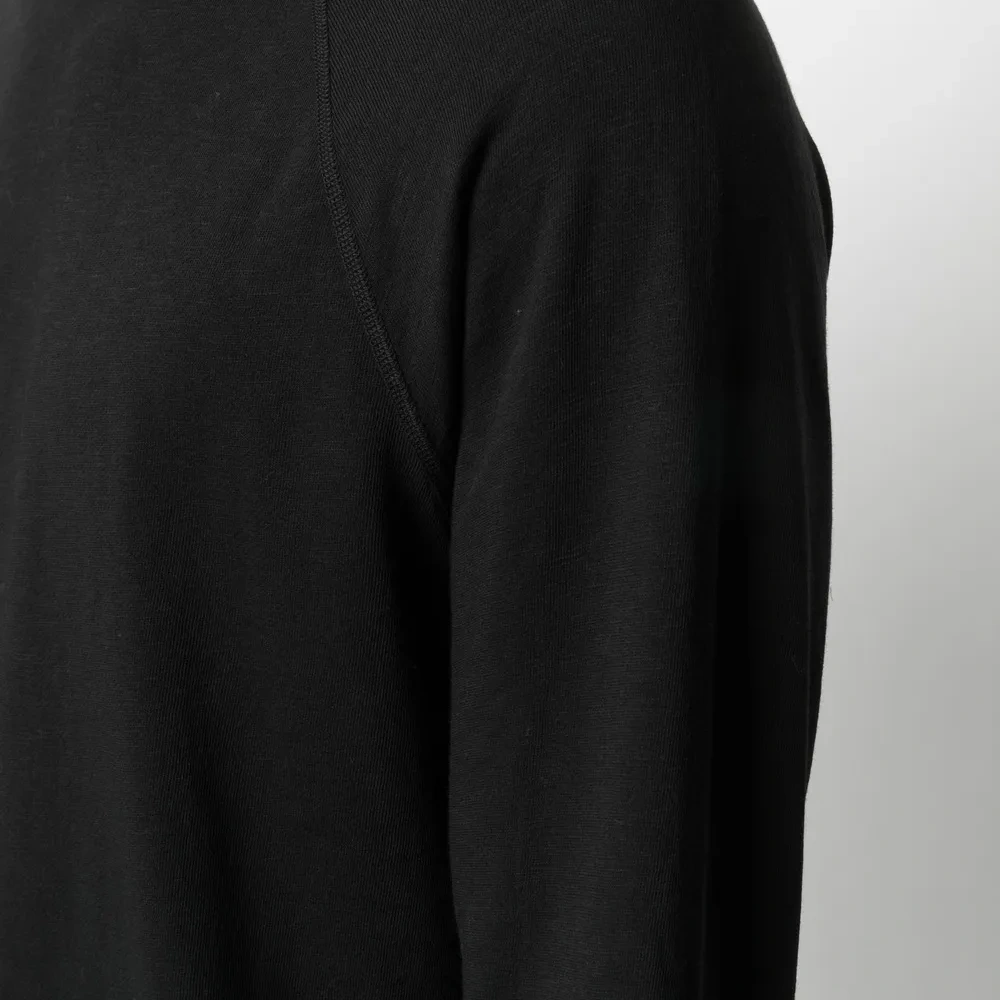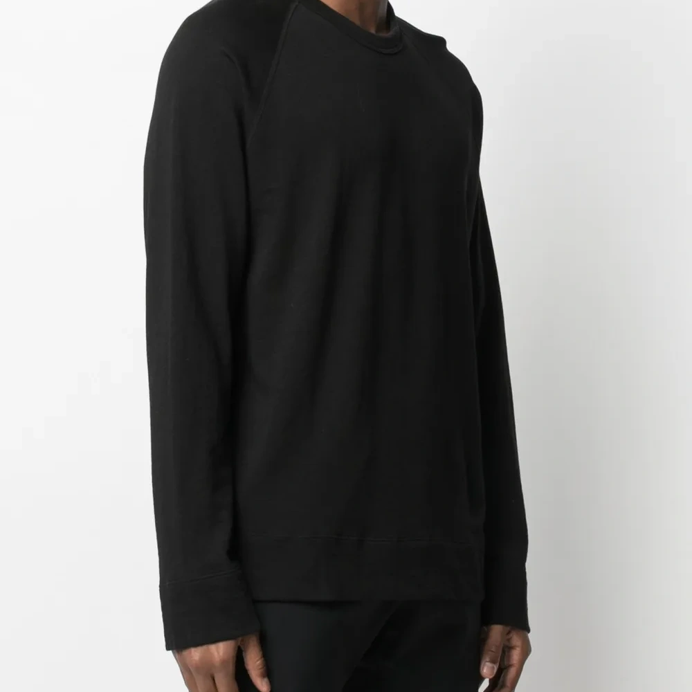 Круглый вырез, длинные рукава реглан и прямой подол. Цвет: черный.